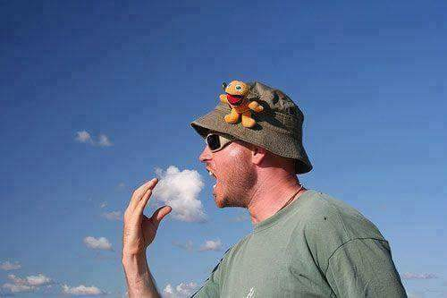 It seems as if the man is about to swallow the moon and see the exact timeline of the creative picture being composed.
