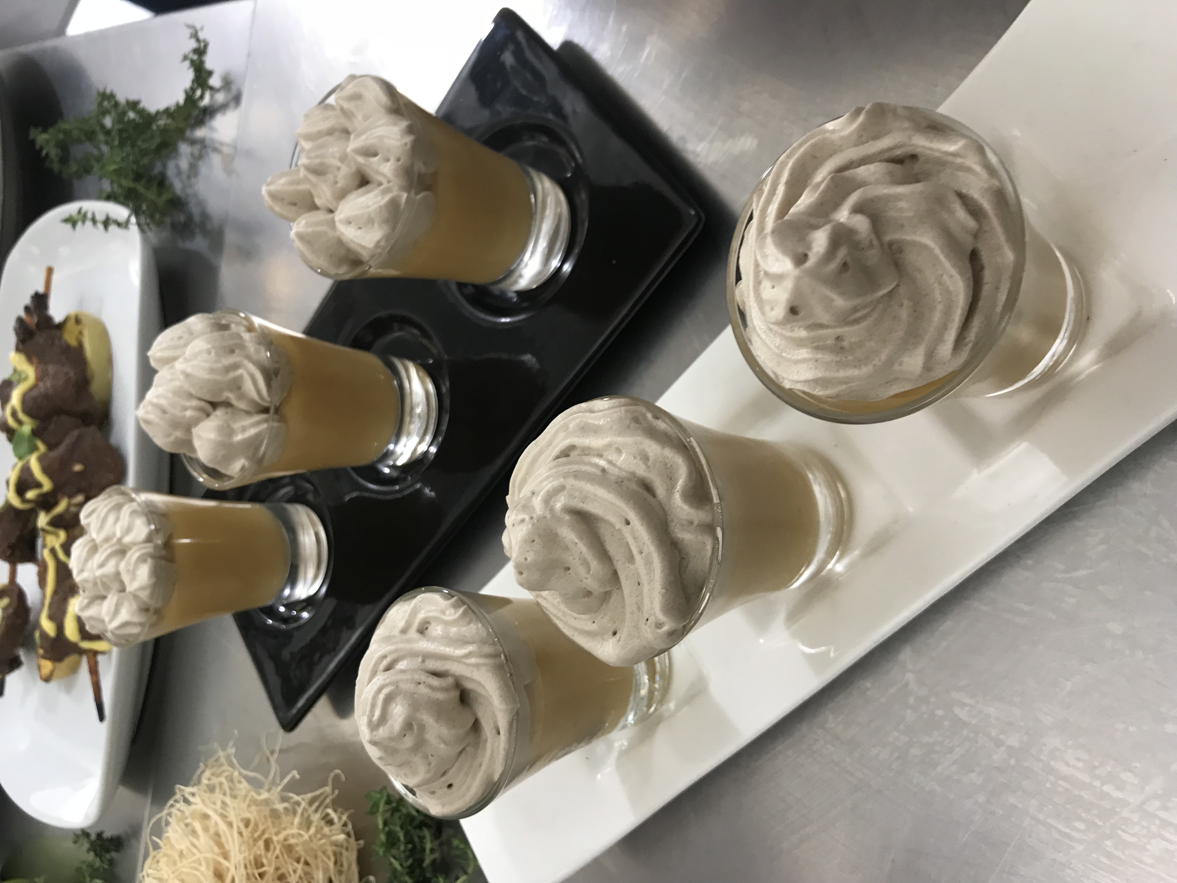 Este es un postre bastante delicioso y como decoración se realiza un merengue italiano con vino Oporto se puede servir en pequeños shots de tequila.