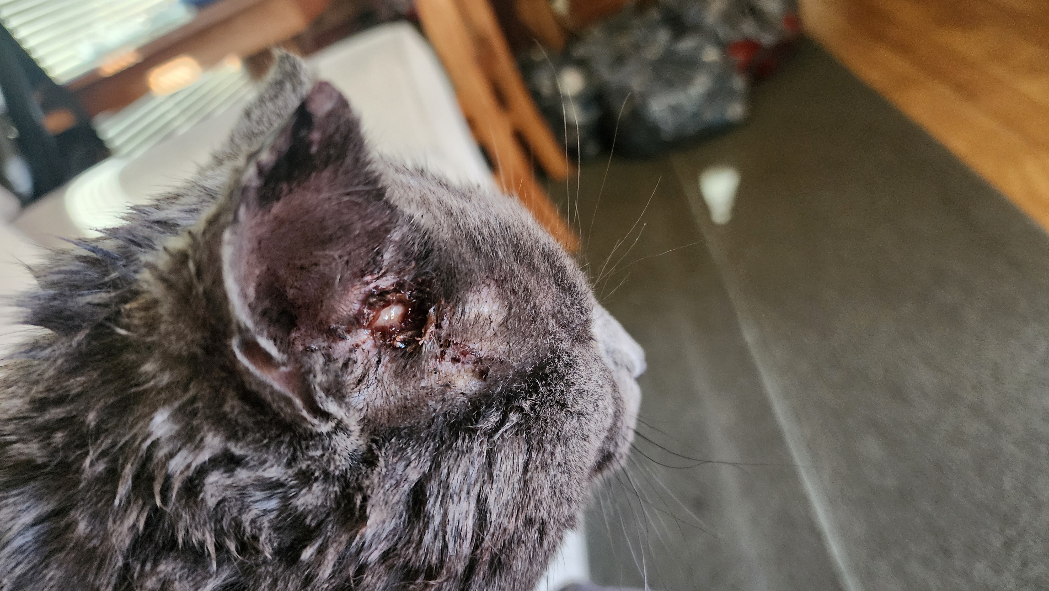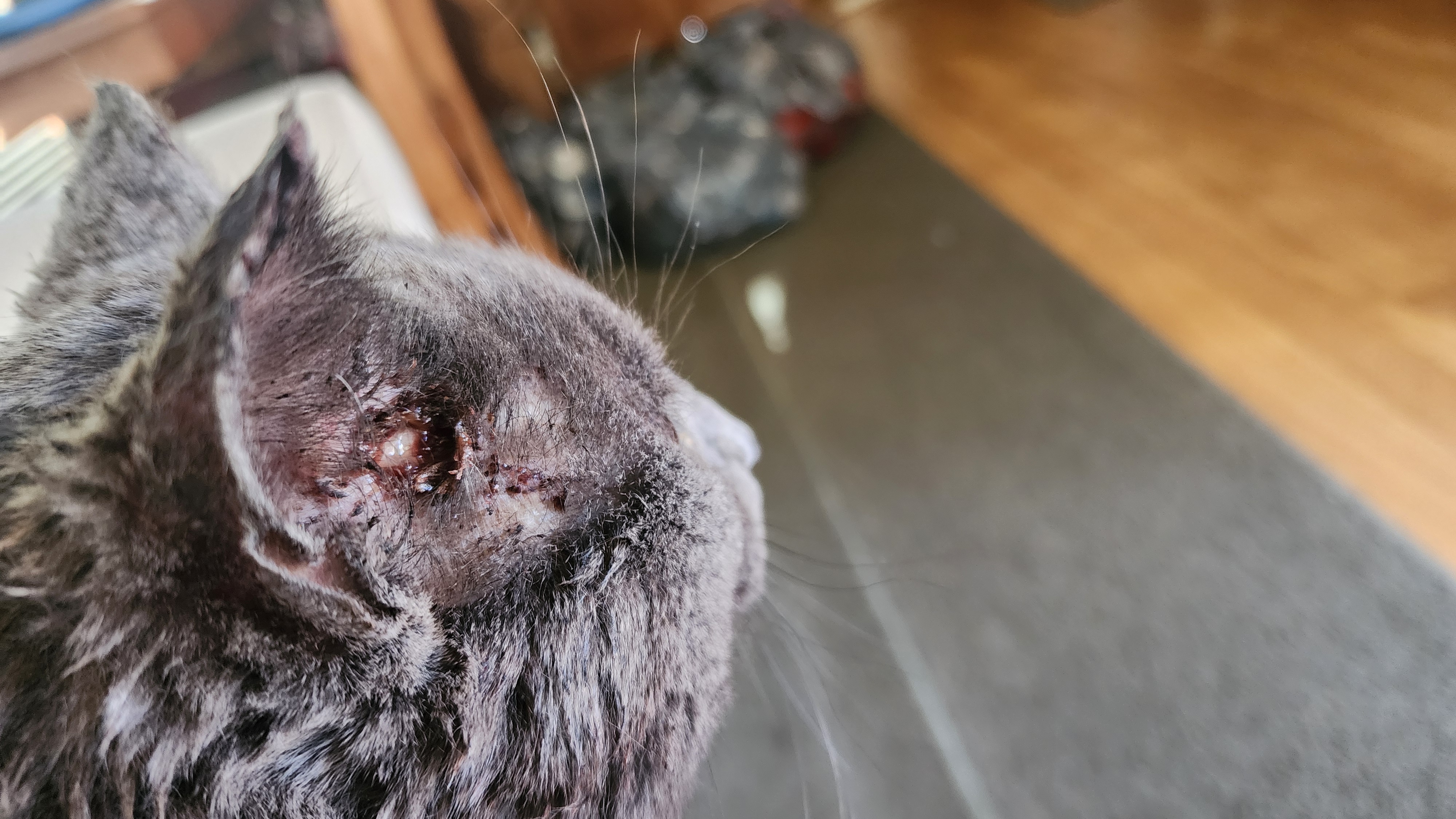 My poor cat came home with some battle wounds.