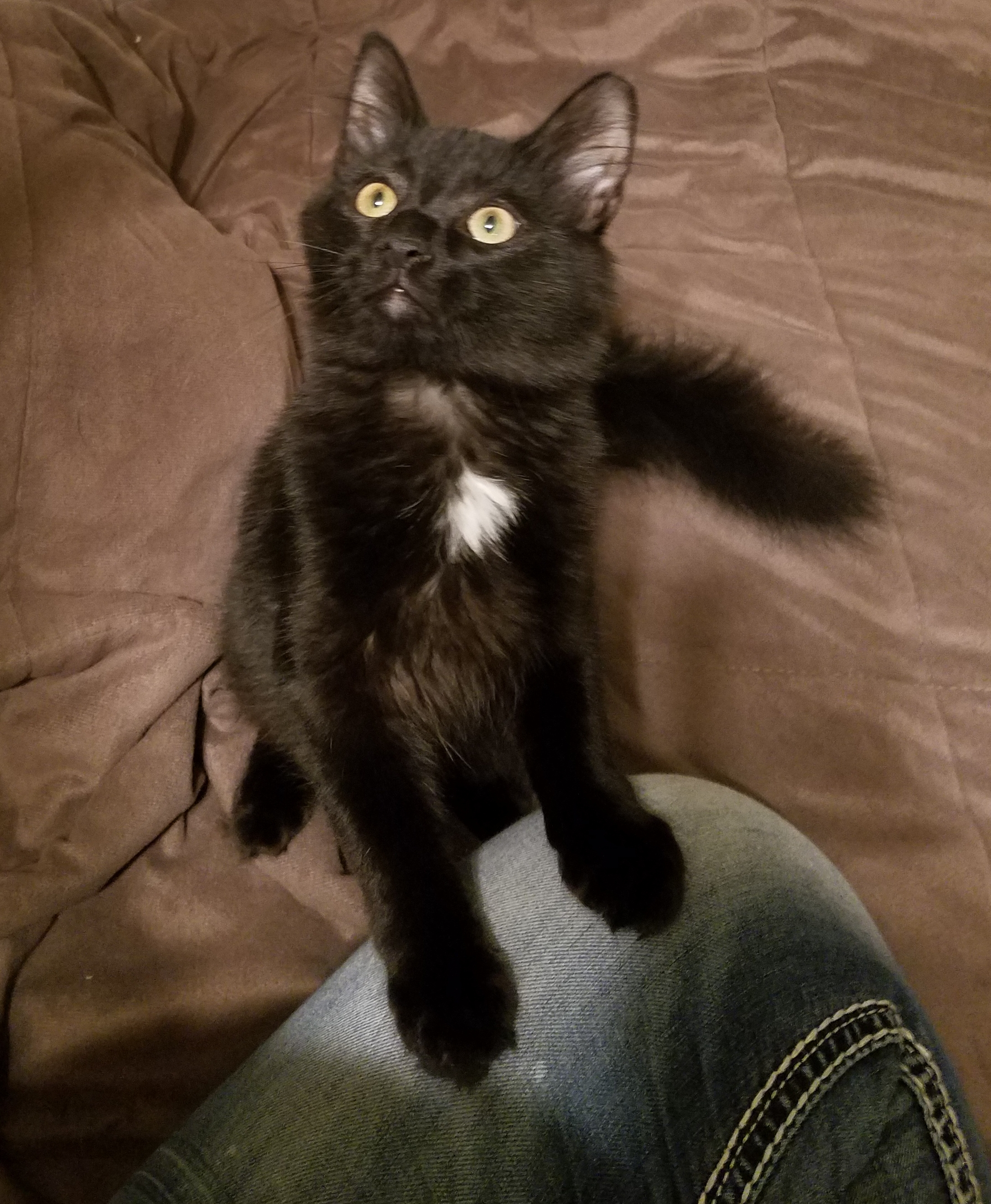 I'm going to keep this post pretty short, since I'd like to spend some time exploring around and catching up on everything I've missed. So instead of an art post today, I'd like to you all to meet the newest member of our family... please allow me to introduce Xeno, the naughtiest, but sweetest kitty there ever was.