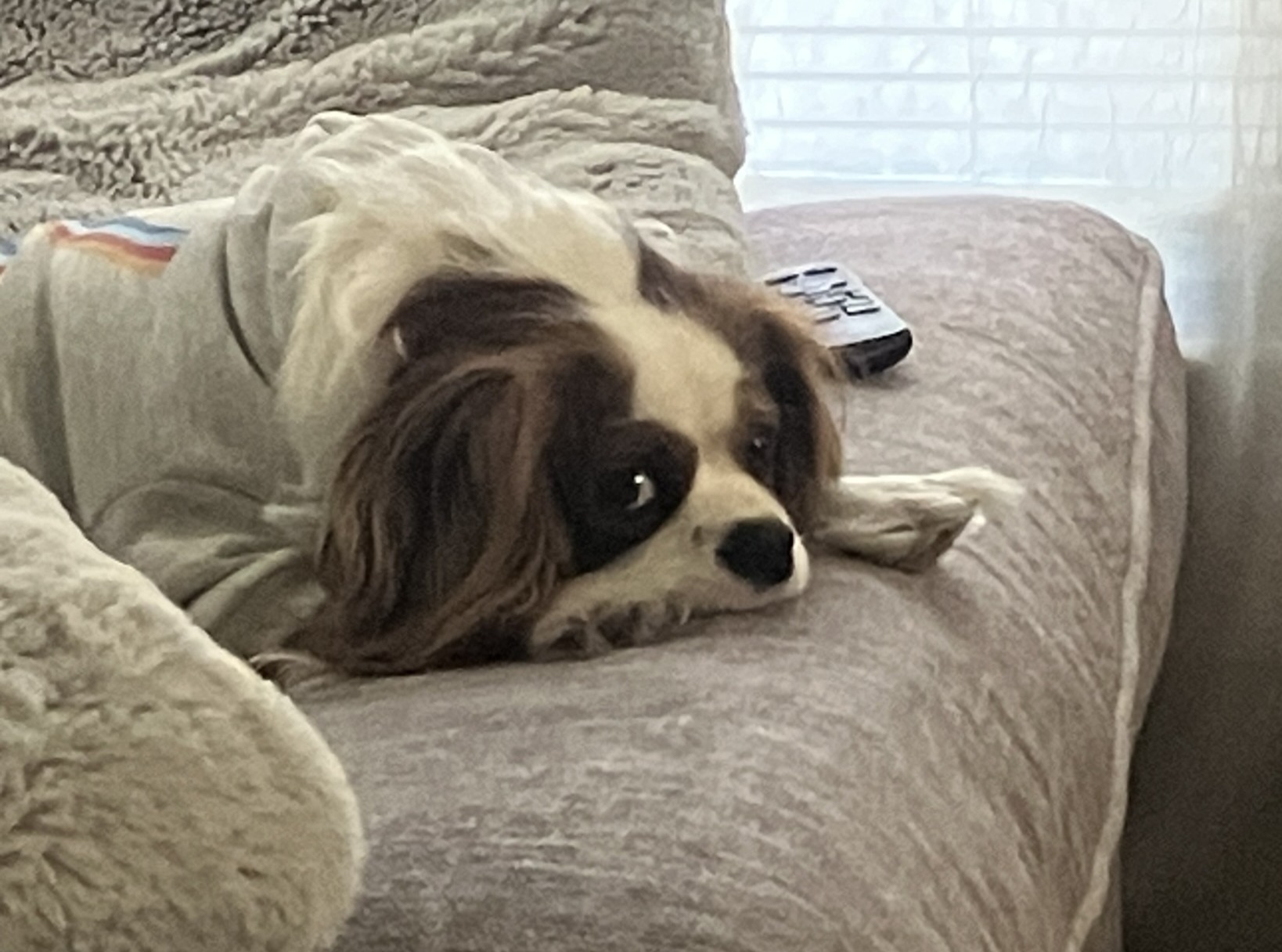 If I look a little rough in this photo, I was going through some back pain issues at the time. I doubt Indy would have let me put him on the couch and press my lower back against him for heat, but this time of year you can always find ice.
