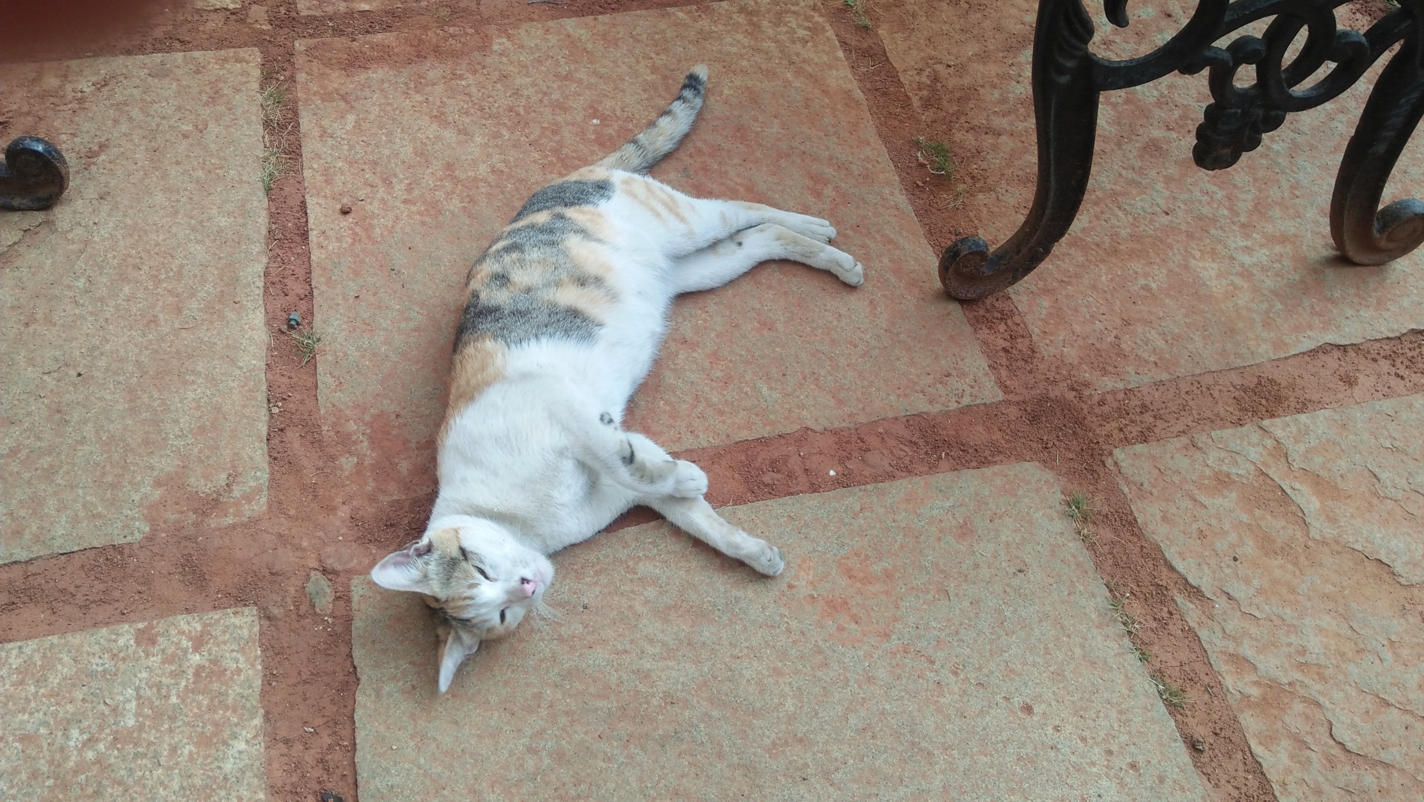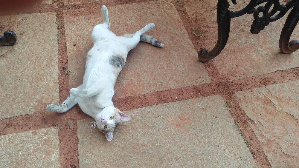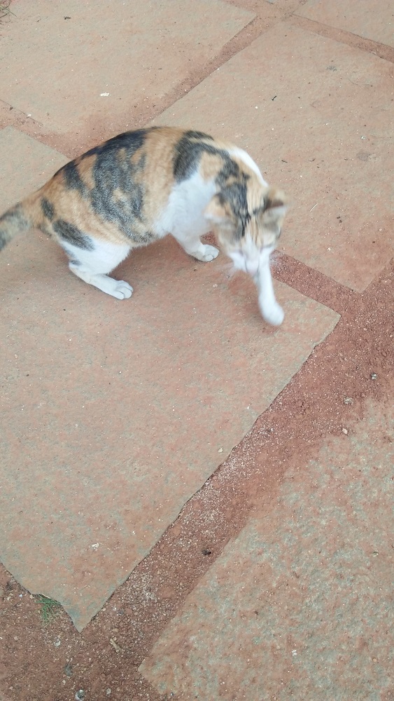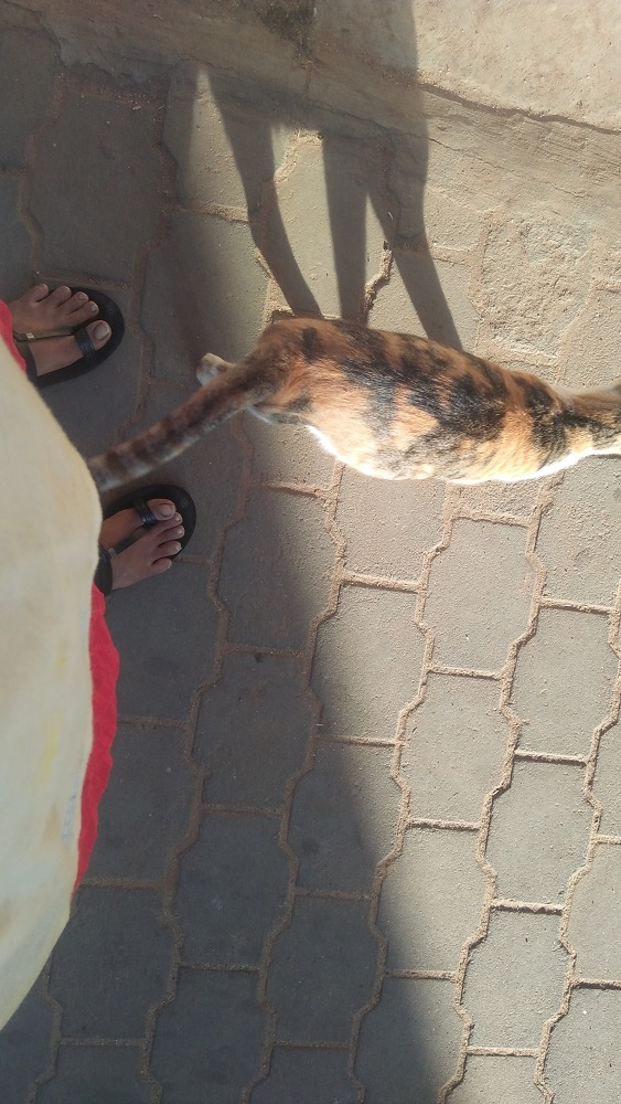 Meow has asked me to pet it several times else it would run and block my way. Post contact with Meow, I always change my clothes and wash my hands because Mochu waiting at home stares at me asking, “so, my wet food?, I saw you taking it out, you should have given that to me, lady!!” Generally I lock Mochu up when I pack some wet food for Meow and release him after I refresh, so it can be safe for Mochu to come near me and demand what it wants adamentally.