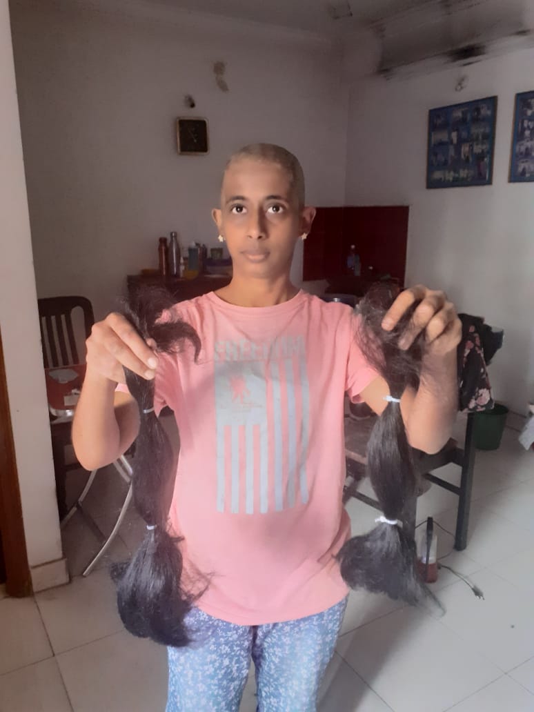 So I became bald contributing to the happiness of the suffering in some sense by having donated my hair to Cope With Cancer, who make wigs for cancer patients.