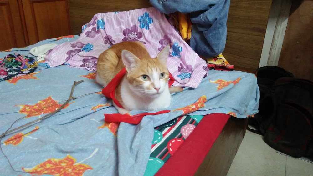 Post a year and a half after Garu, adopted a rescued adult cat that became known to be Mochu in the household. It’s purpose was to entertain Garu who was obviously bored at home, with no cat to play. Mochu came, rather at first in the most unfriendly terms with Garu and then it went into hiding for 2 straight days, and re-emerged to fight with Garu and in a while they became friends.