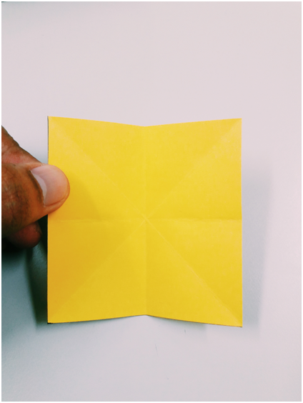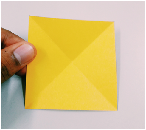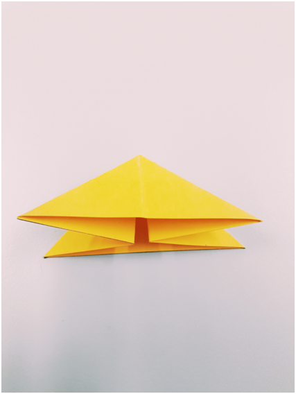 - Then fold it again to make a smaller triangle. Then fold it its edge like this