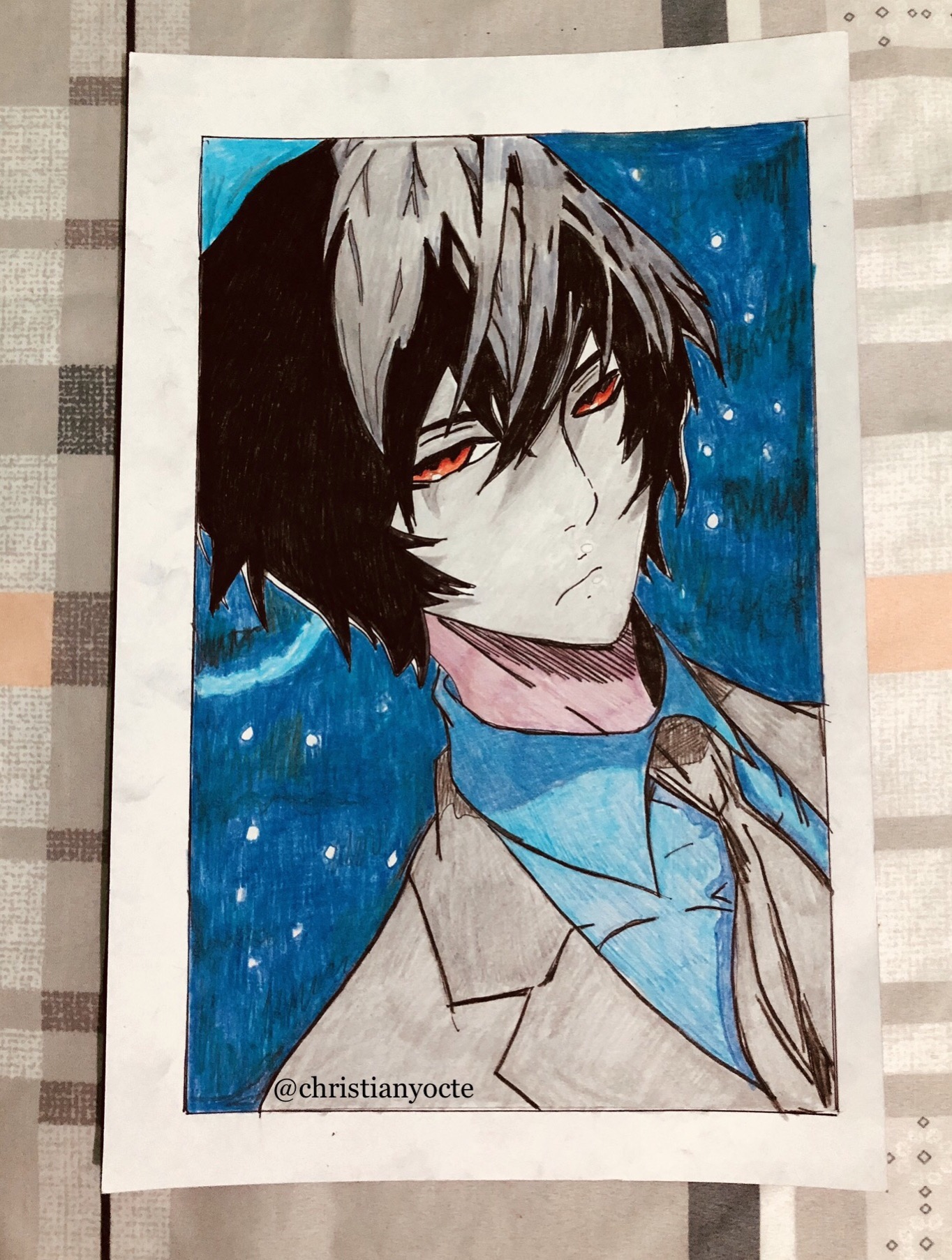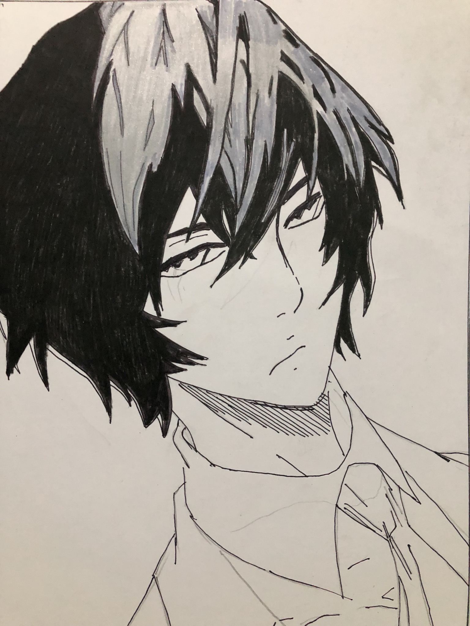 Step 3: Coloring the Hair. After inking the pencil lines, it is now the time to color the subject. In this case, we want to start at the top or the hair. The hair is far simpler to draw in anime characters rather than in reality. Thus, the hair for this drawing is easy-to-do compared to the regular portait drawing. So, for the hair, I used a colorpencil of black, ash gray and gray colors.