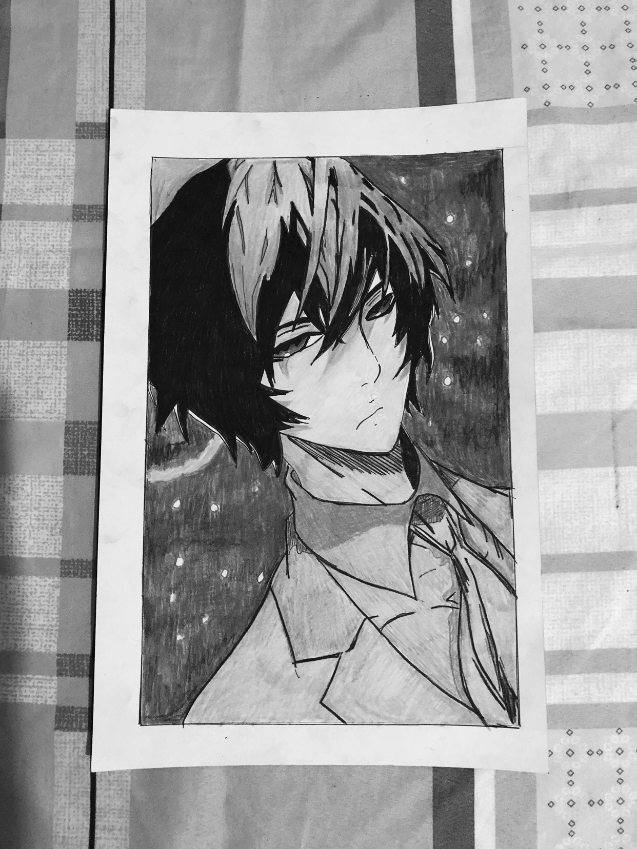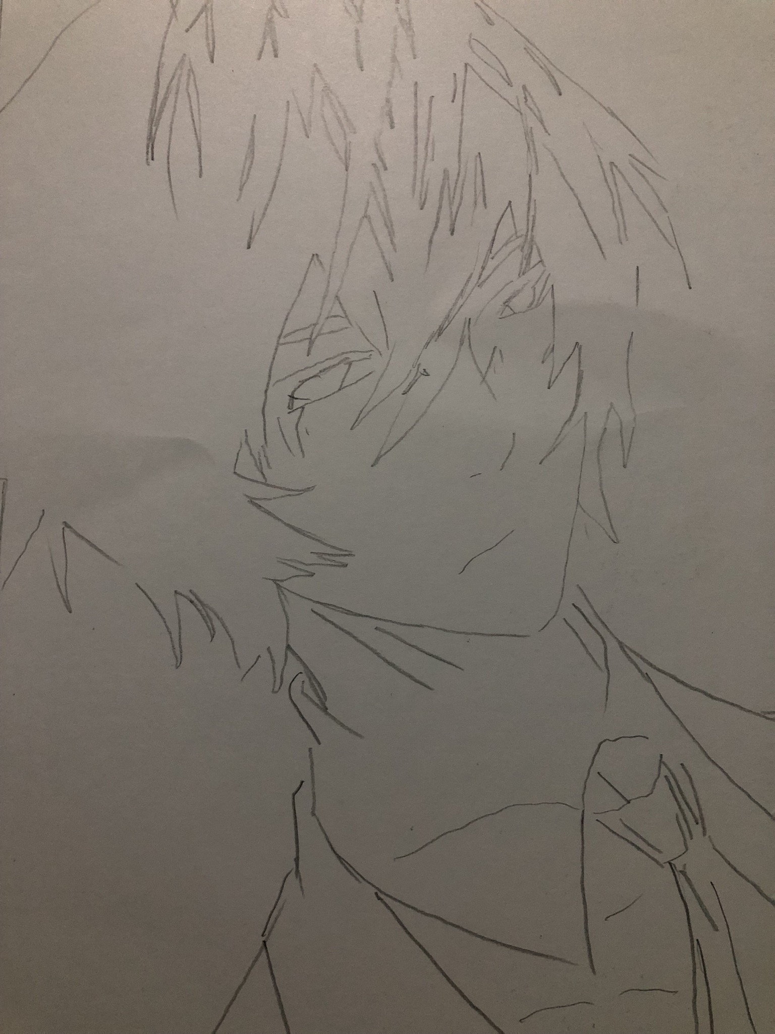 Step 1: Penciling: The first thing I did was I grabbed a pencil. Using the pencil, I outlined the subject. I also included the shadow line and other important details in the subject.
