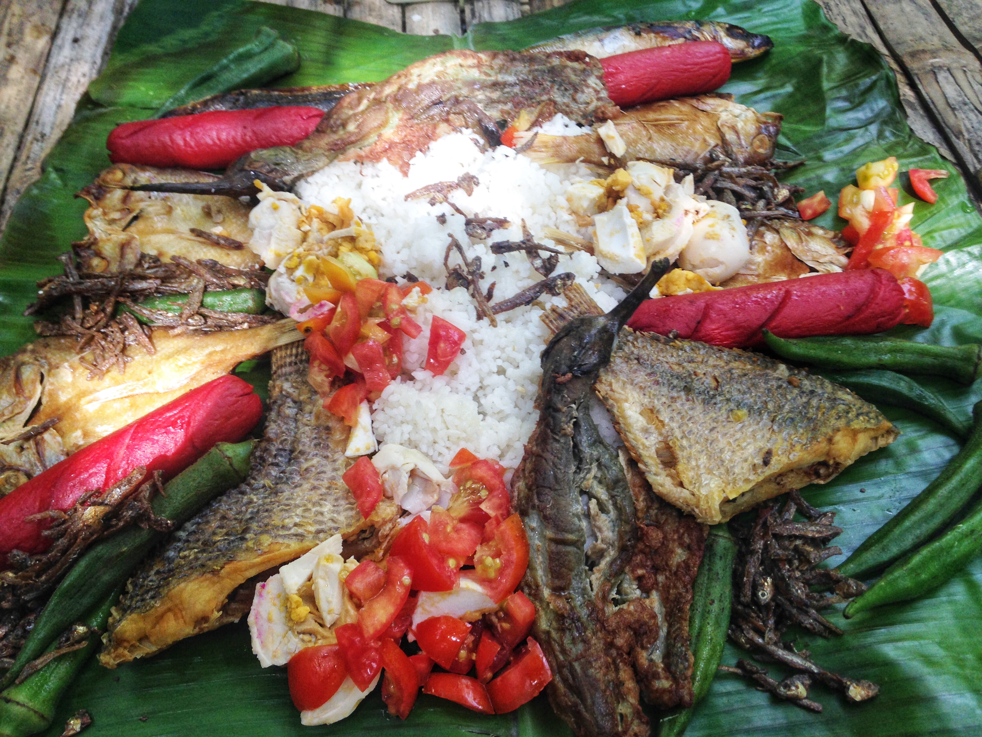 For our food, we brought a “boodle fight”. In the Philippines, it is a meal wherein ideally, the food is placed on banana leaves. There is rice in the middle and there are different kinds of viands around and above the rice. For our viand, we had hotdog, salted egg, fried milkfish, eggplant and tomato.