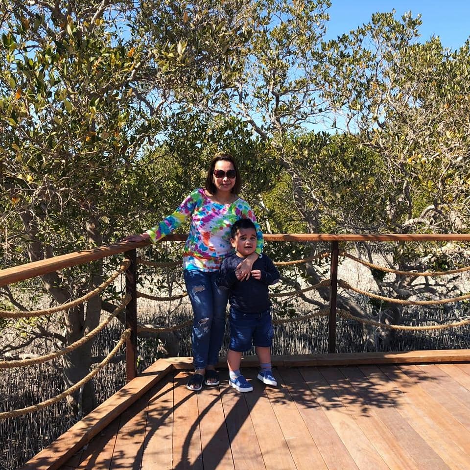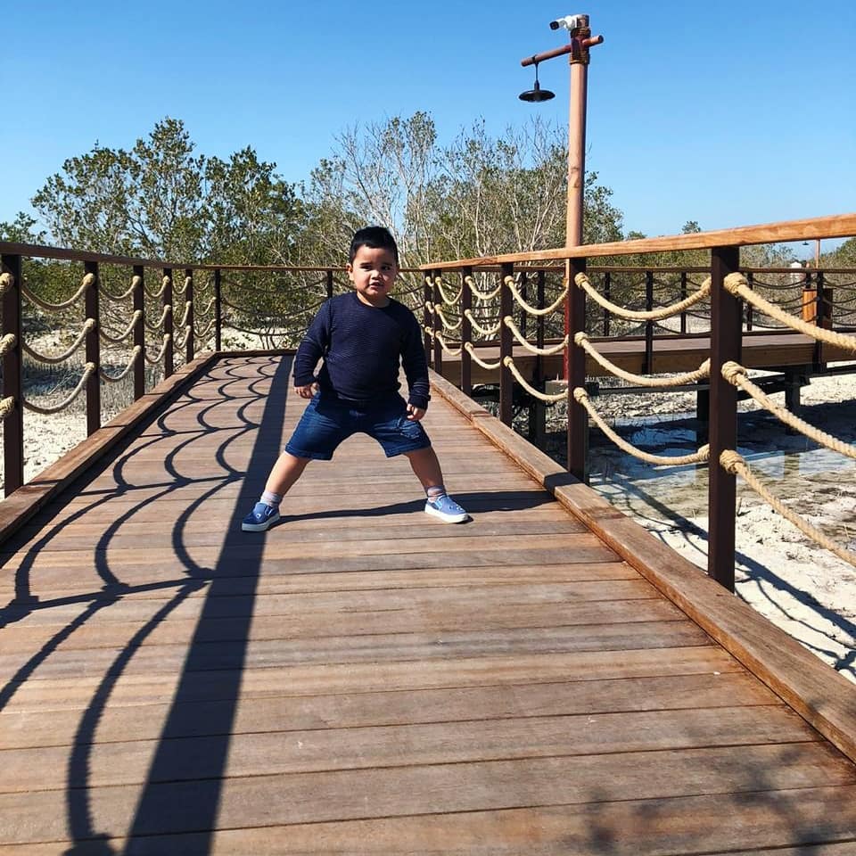 Yesterday, my husband and I celebrated our valentine's day at the mangrove walk, a new tourist spot destination here in the United Arab Emirates. I enjoyed the 1-2 km walk but unfortunately, our son didn't. Haha! The weather was nice, sunny but cold. I just pray that UAE's weather is cool all throughout the whole year but we are in the Middle East so yes, we got a very hot weather during summer season.