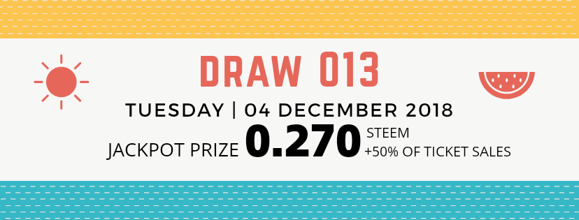 This also aims to provide daily fun and exciting game to every Steemian, including those who are just starting their journey here in Steemit. Thus, ticket price was set to a very affordable rate of 0.010 Steem. Each account is only allowed to bet for a maximum of 5 tickets.