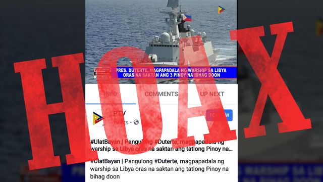 HOAX: 'Philippine warship' photo in PTV report on kidnapped OFWs in Libya: