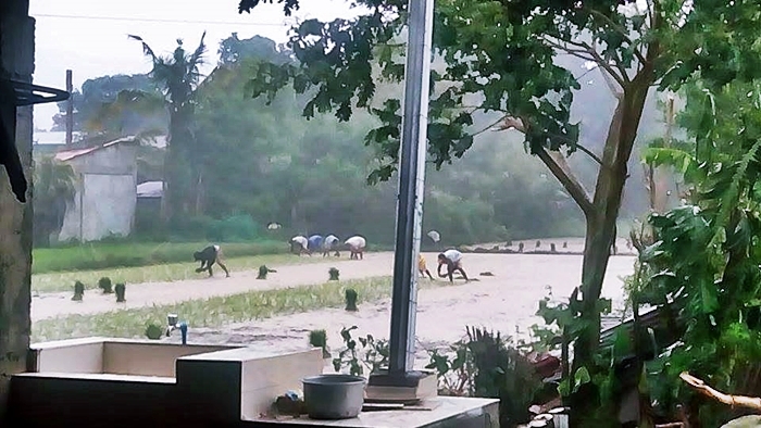 Nothing but respect to these people who are working so hard just to fulfill the needs of the family despite such a strong typhoon hitting them.