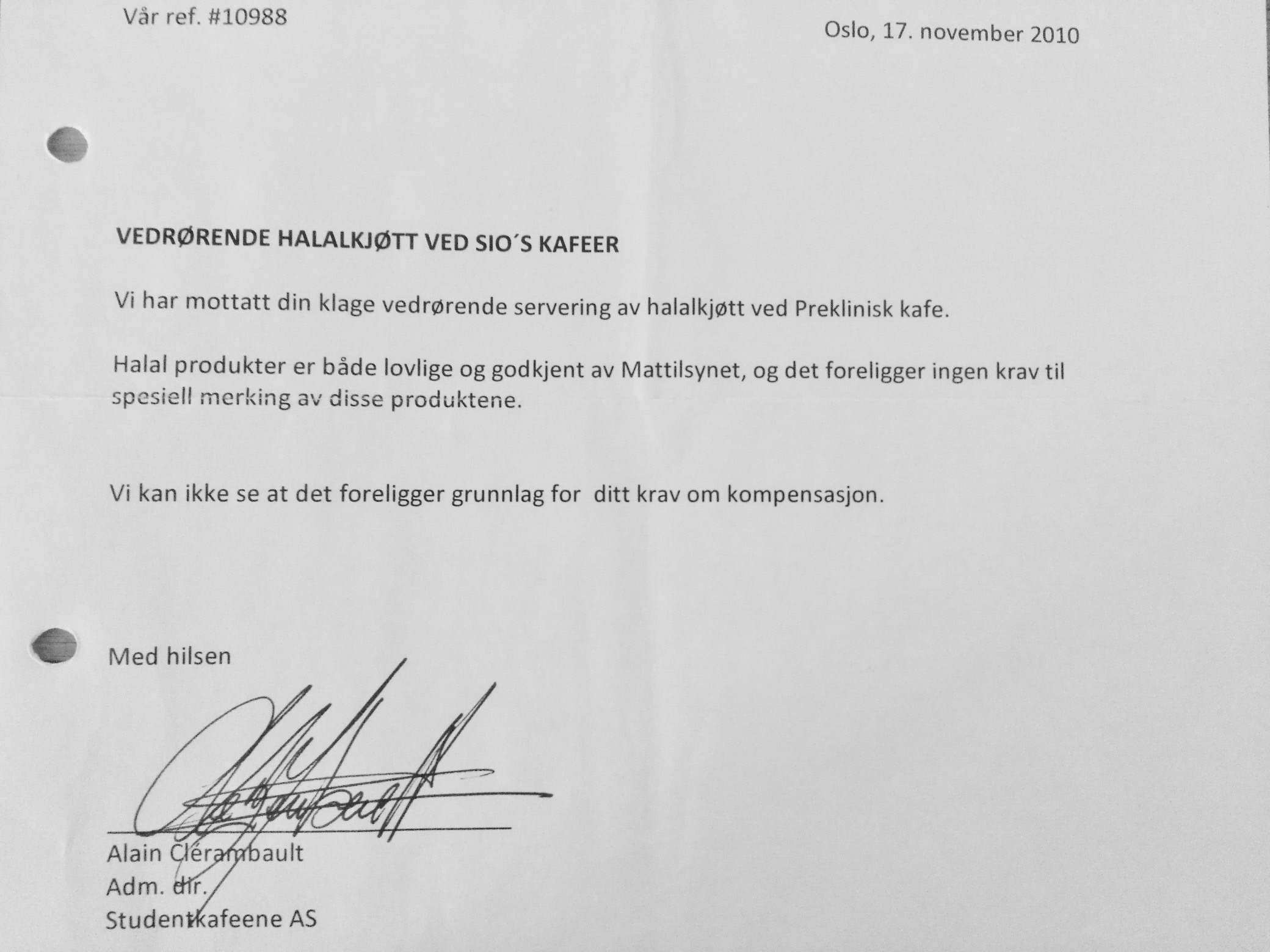 I dug into this, and a little hesitantly the head of student’s cantina (SIO kantiner) admitted that they did serve halal ‘occasionally’. Under a little pressure, he confessed they served halal daily. I said that I did not want halal, and I got them to specify it it was halal food or not.