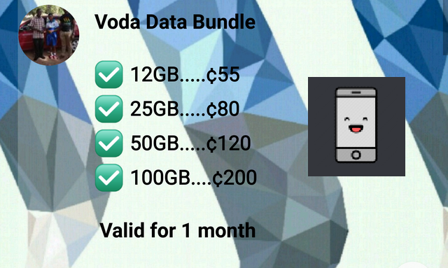 The prices are already available in CEDI's (Ghanian Fiat) but are yet to be determined in SteemP but will have a reasonable discount. It may be somewhere around 60 -70 steem or whatever the current equivalent of 55 Ghanian cedi's for 15Gb for 1 month. I will see about breaking up the units into smallest amounts possible, like 5gb for 20 or 30 steem to allow people to buy small amounts of data to keep themselves going. No promises on prices and they may change.