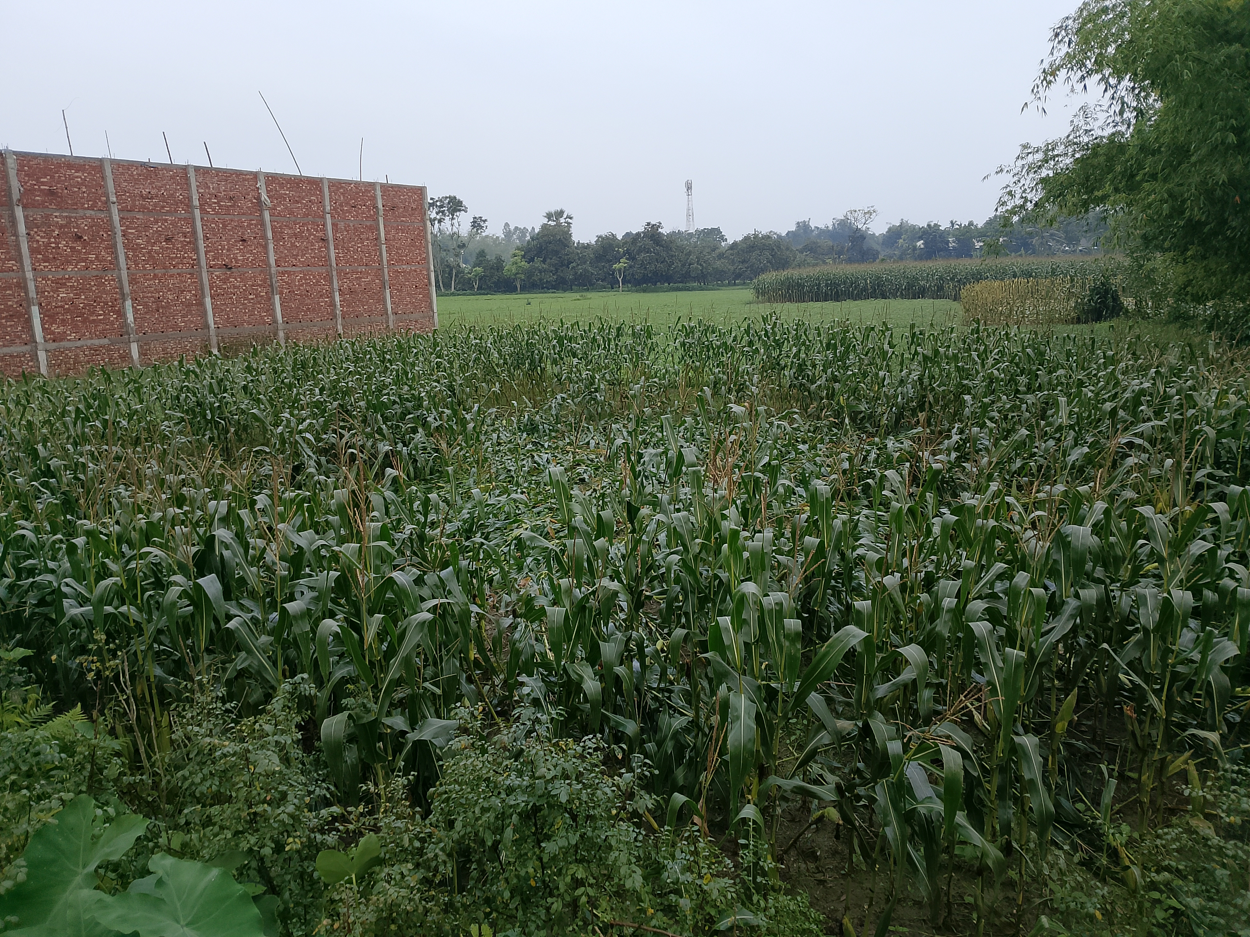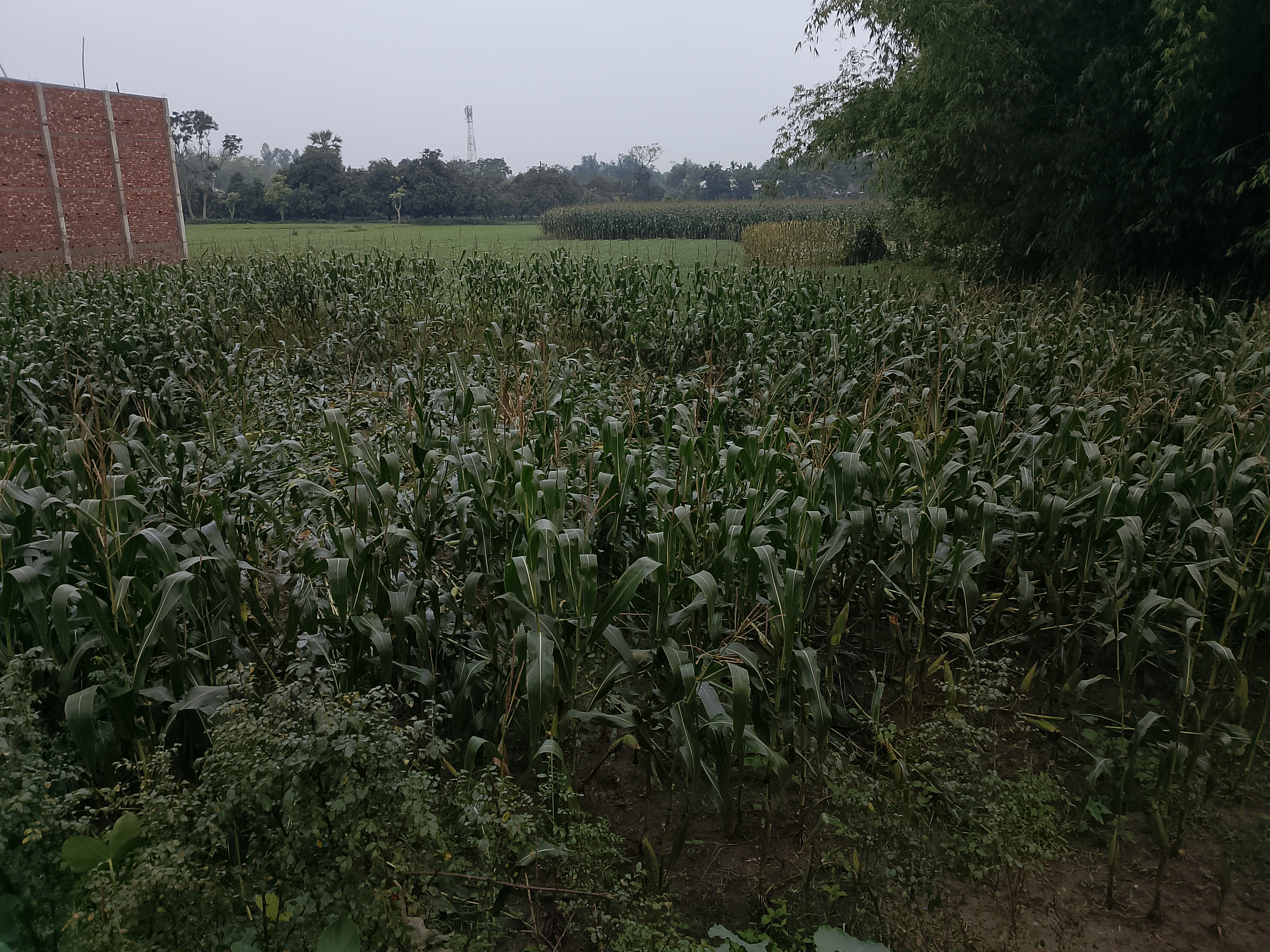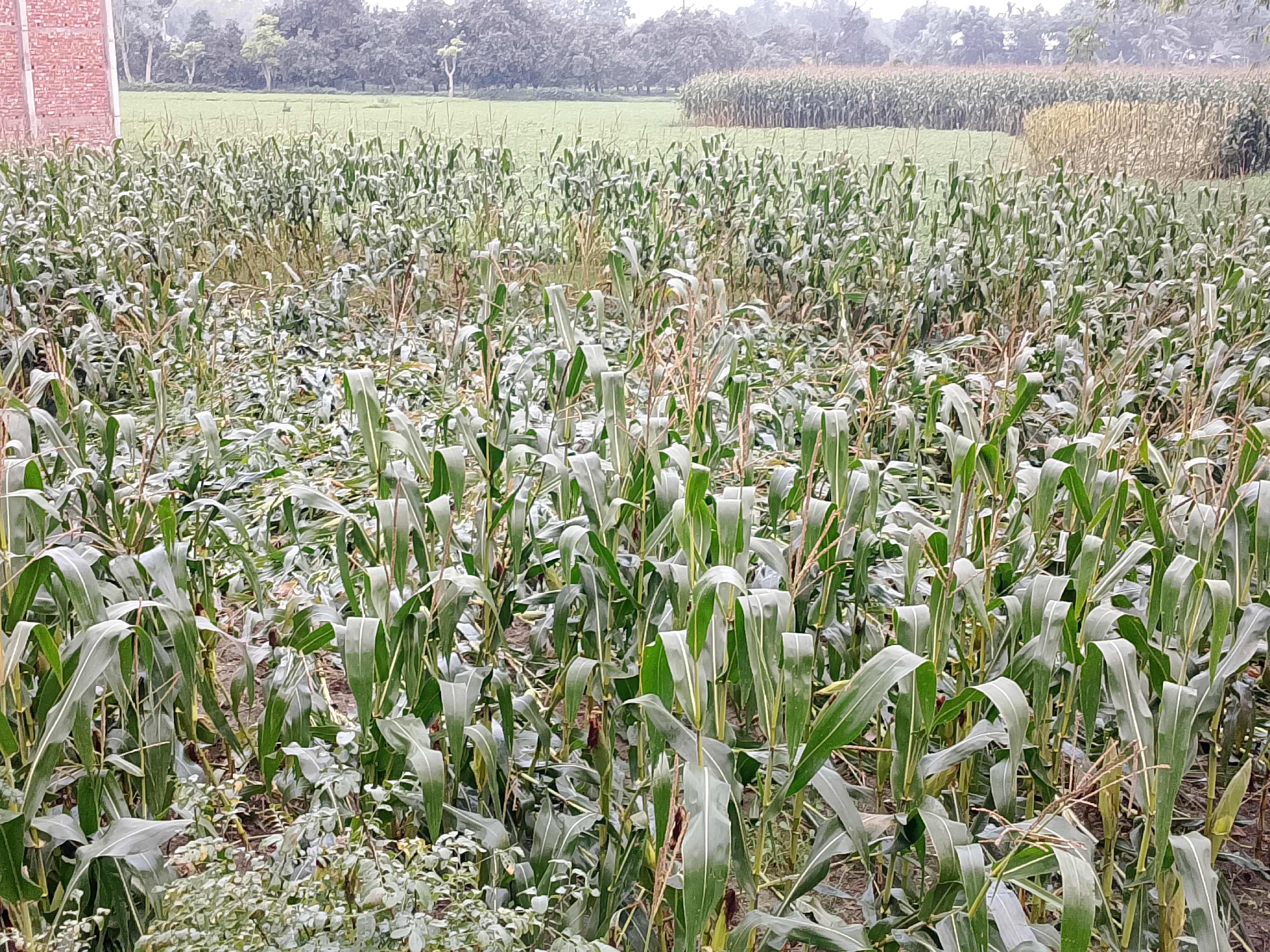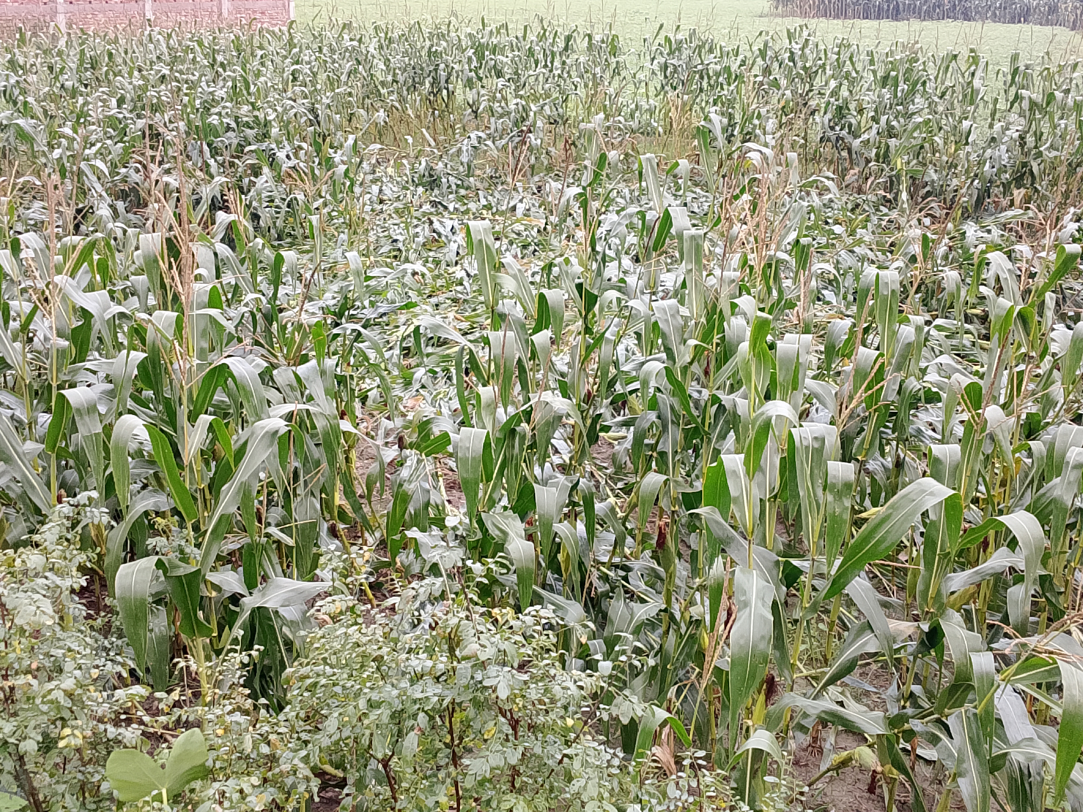 You can see how the corn plants have been broken due to the rain.