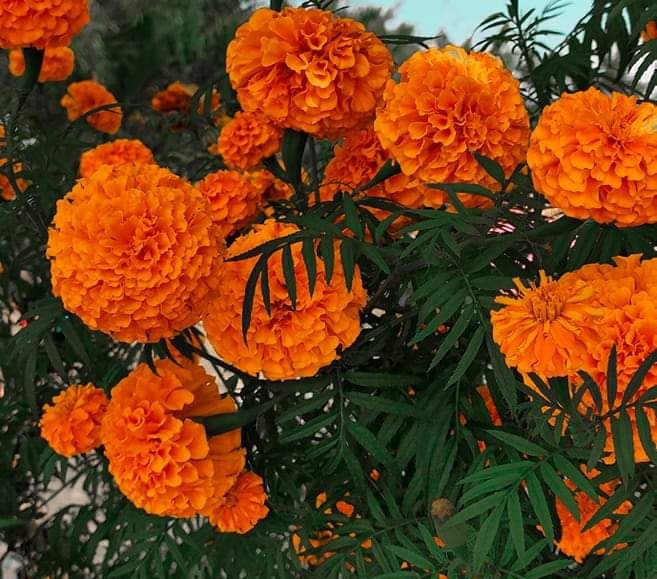 Tagetes species vary in size from 0.1 to 2.2 m tall. Most species have green leaves. Flowers naturally occur in gold, orange, yellow and white, often with maroon highlights. Usually ray florets and discs. They have fibrous roots. Depending on the species, Tagetes species grow well in almost any type of soil. Most horticultural selections grow best in soils with good drainage and some cultivars are known to have good drought tolerance. Protoanemonin is released by damaged plants and can cause skin irritation.I hope you like this plant as well as the flower. If you like it, please support me and help me by upvoting my post.