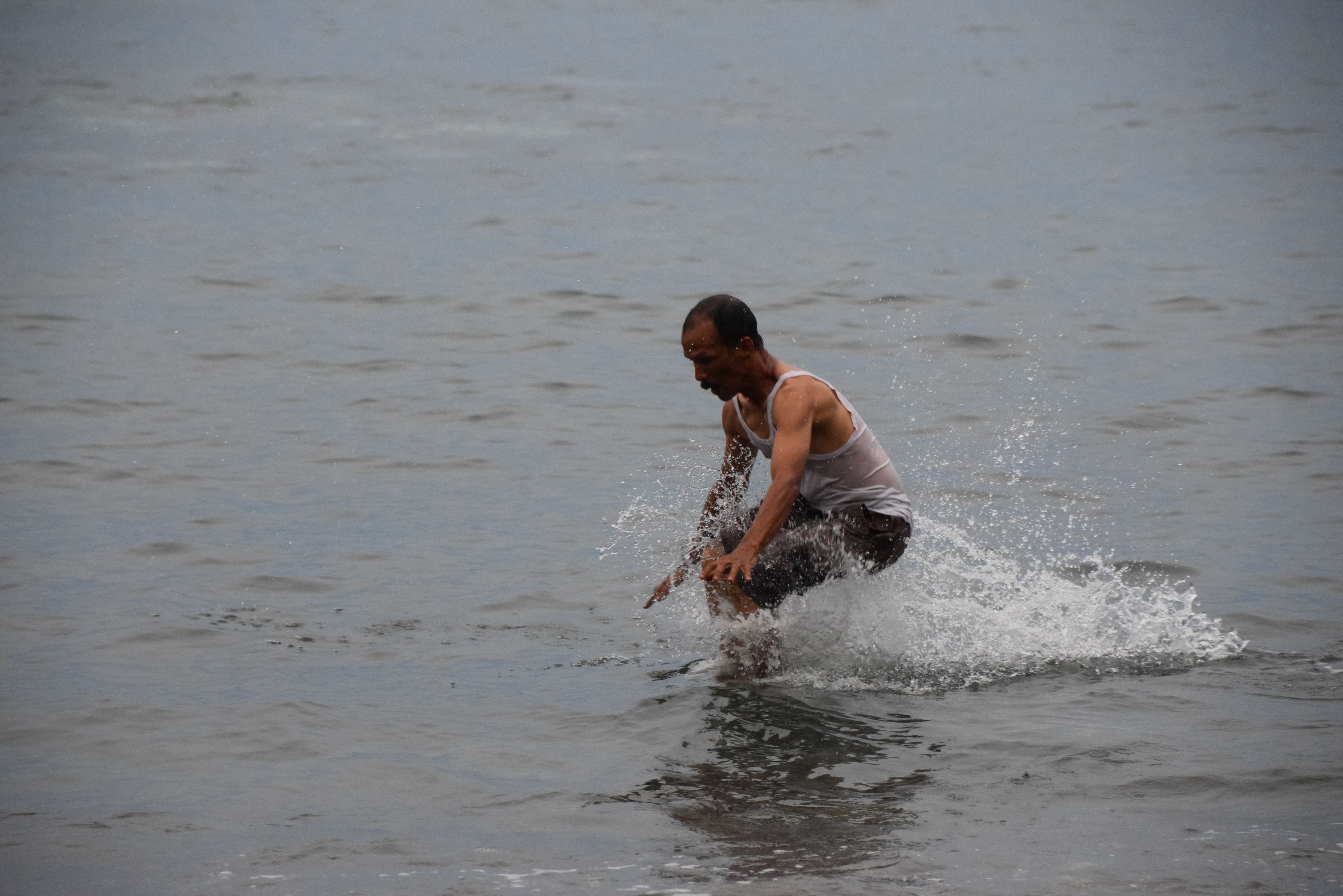 When we go to sabang there is a comrade this one is eager to berenag at sea, but he can not swim, haahh, so this is the style of swimming
