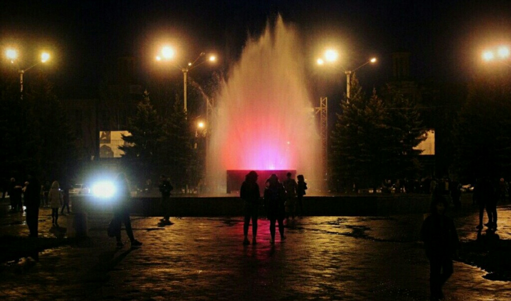 So recently we have new stops around the city, patching holes in the asphalt, and now the fountain with lighting...