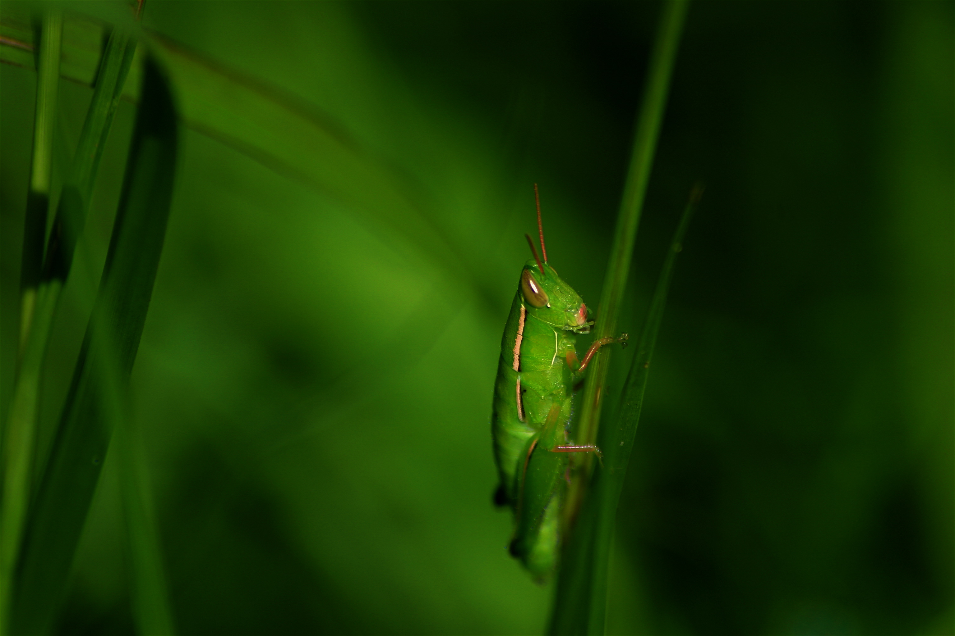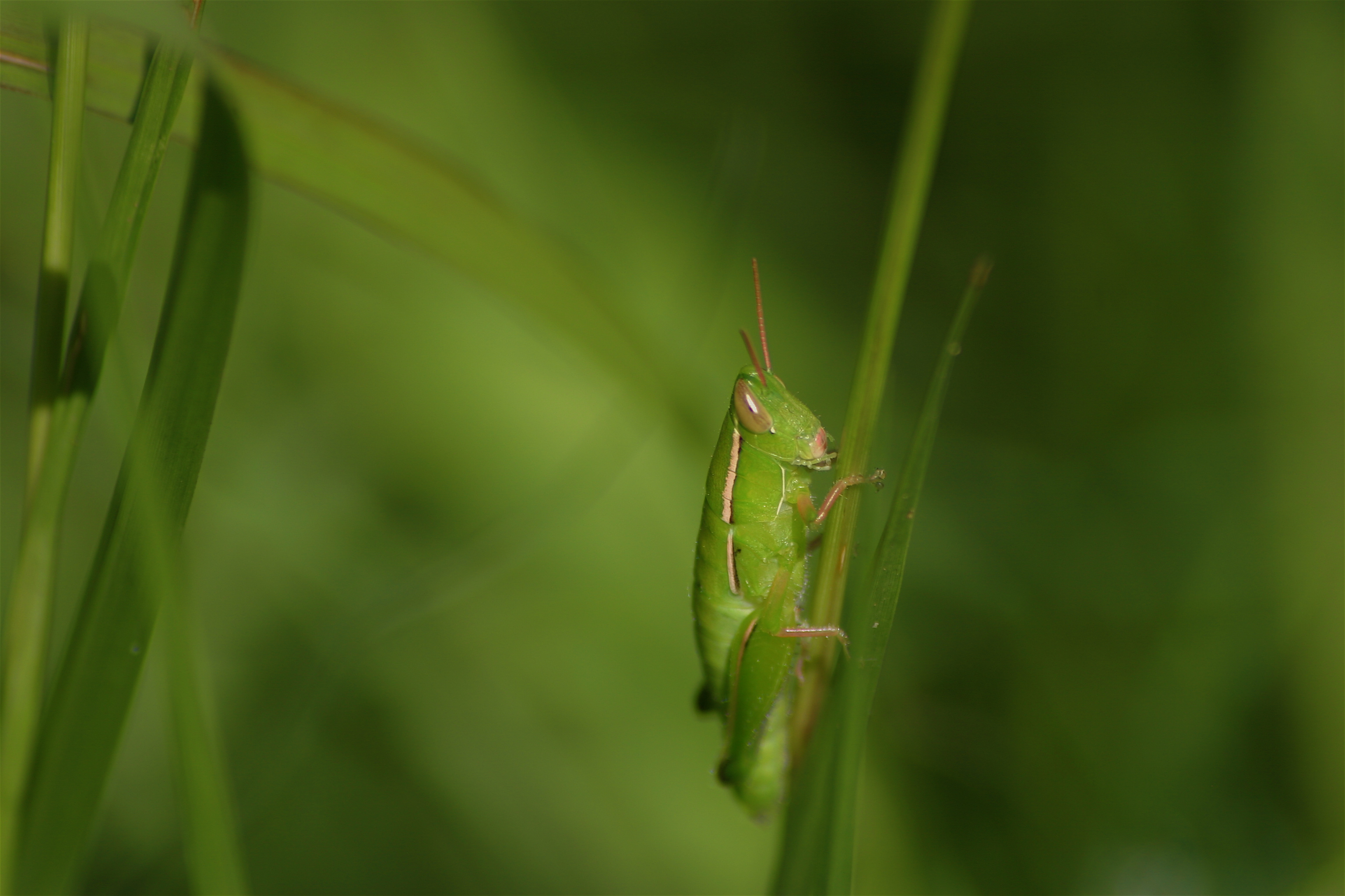 The first set of shots are straight on shots. The first shot is the closest I could get to the grasshopper before it hopped away.
