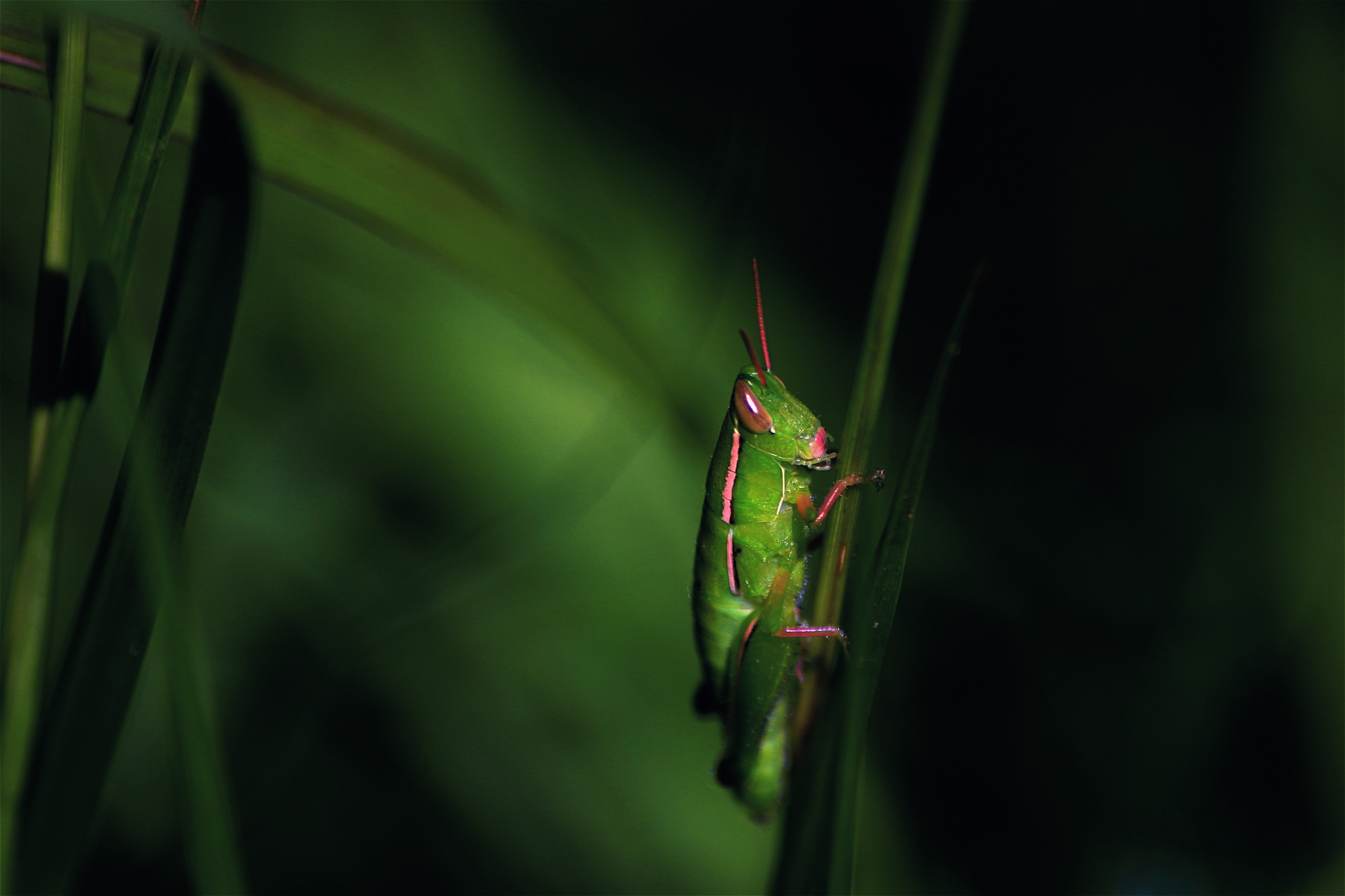 The second set of shots are side angle shots, to give a better idea of the color diversity of the grasshopper. I also played around with the aperture on the second and third shot of the set to add another dimension to the shots.
