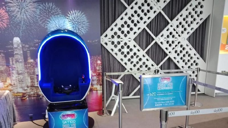 Here is Sky High Tech Zone facility. At that location, visitors will be invited to sit in a chair and wear a virtual reality headset. Later visitors will be taken to enjoy Hong Kong from a height and feel very real.