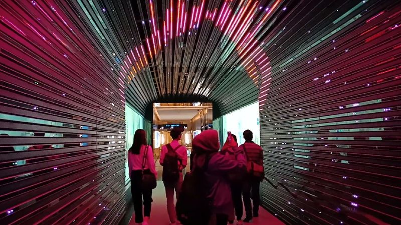 Entering the building, we will be greeted by a luminous hallway. There is also a screen showing Hong Kong's transformation story from time to time.