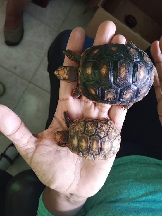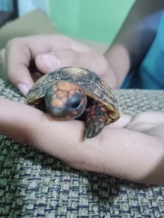 My neighbor brought several baby turtles her grandmother gave her yesterday. She brought them to give to the children, but before giving them away, she called me to come see them and compare them to the turtles we have in our apartment.