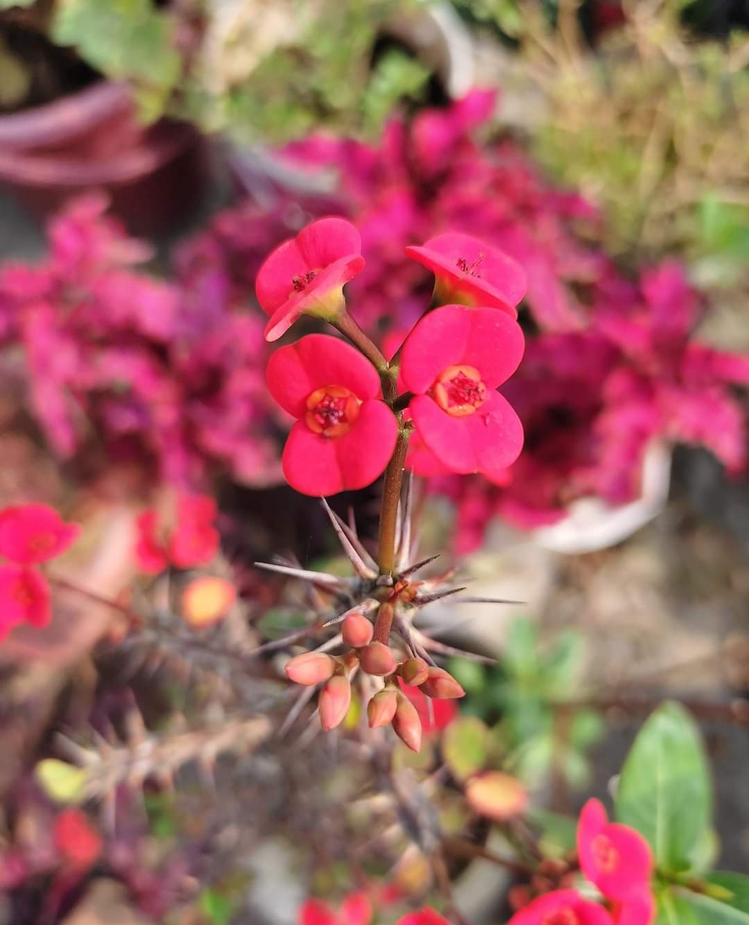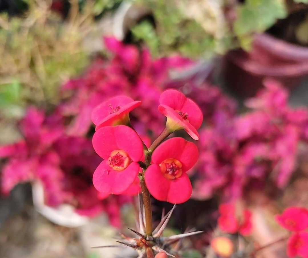 I like Euphorbia flower very much, I share your usual flower. Euphorbia millie crown of thorns, Christ plant or Christ's thorn, is a species of flowering plant in the Euphorbiaceae family native to Madagascar. The species is named in memory of Baron Milius, once governor of Reunion. Later I took out the camera on my mobile and took the photographs there. I hope you like these photographs very much. I hope you like my photography, please pray for me. I will present you with more beautiful blogs..