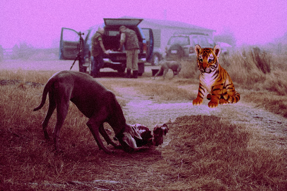 PhotoBomb challenge 44 - Entry 1bodah (45)in #photobombchallenge • 8 years ago This picture tells of a tiger boy watching a dog eating meat #busy #photobomb #contest #funny