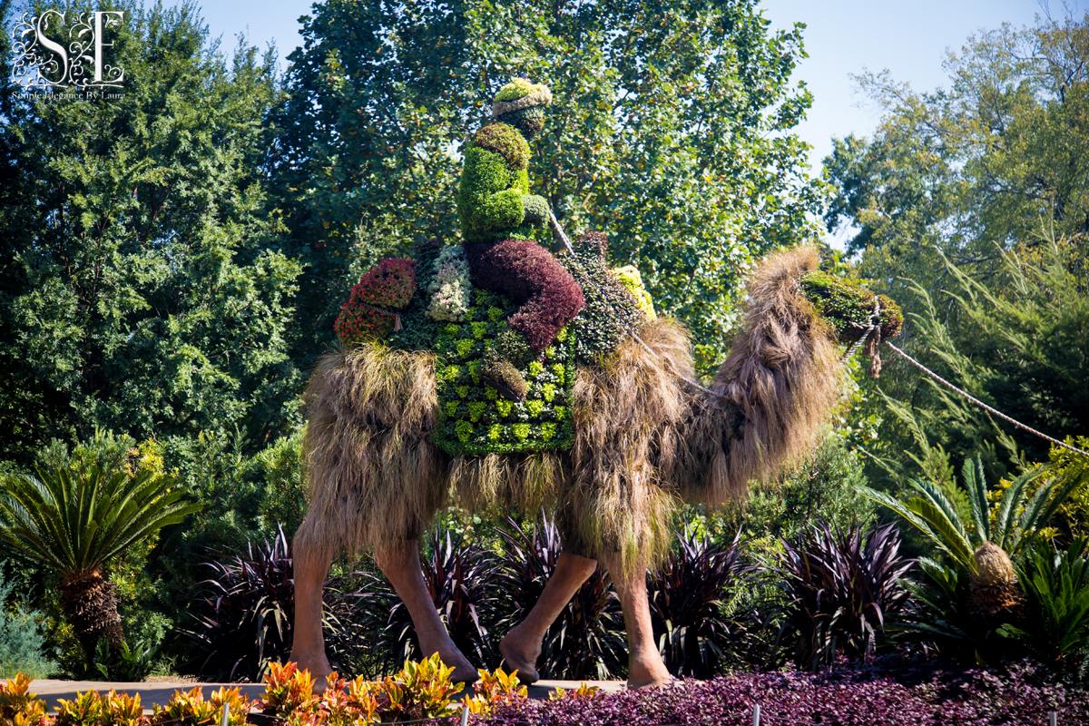 One set of topiaries was designed to look like a caravan of camels.