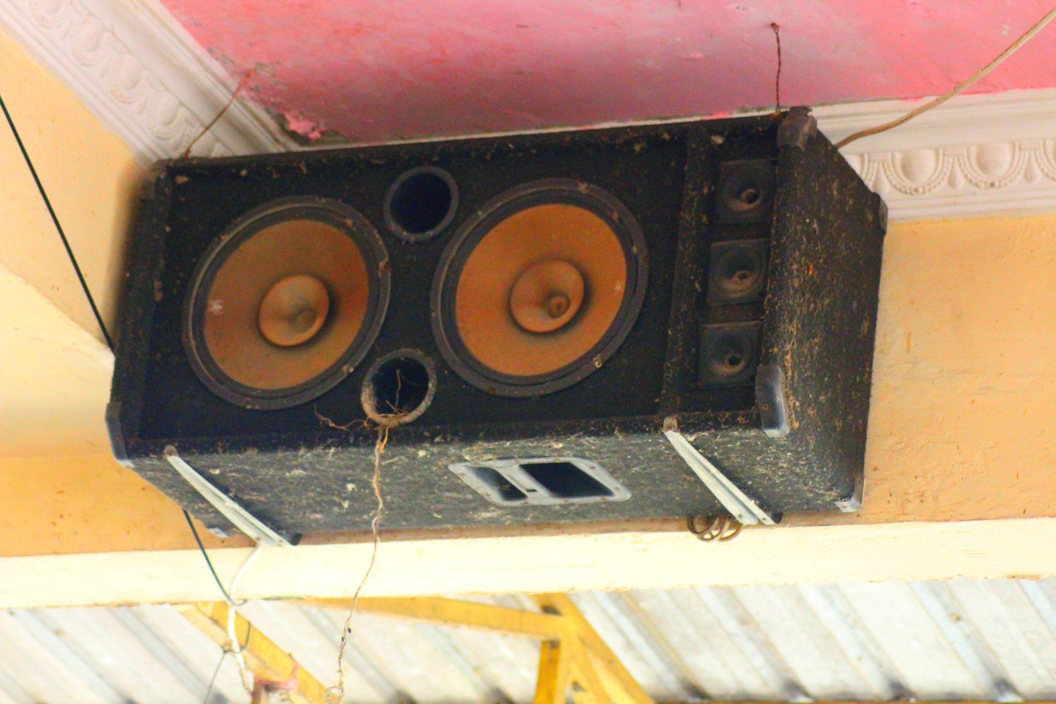 As always, we always spend time in the coffee shop to hang on steemit. By coincidence, I observed a loudspeaker hanging at the top corner of the coffee shop.