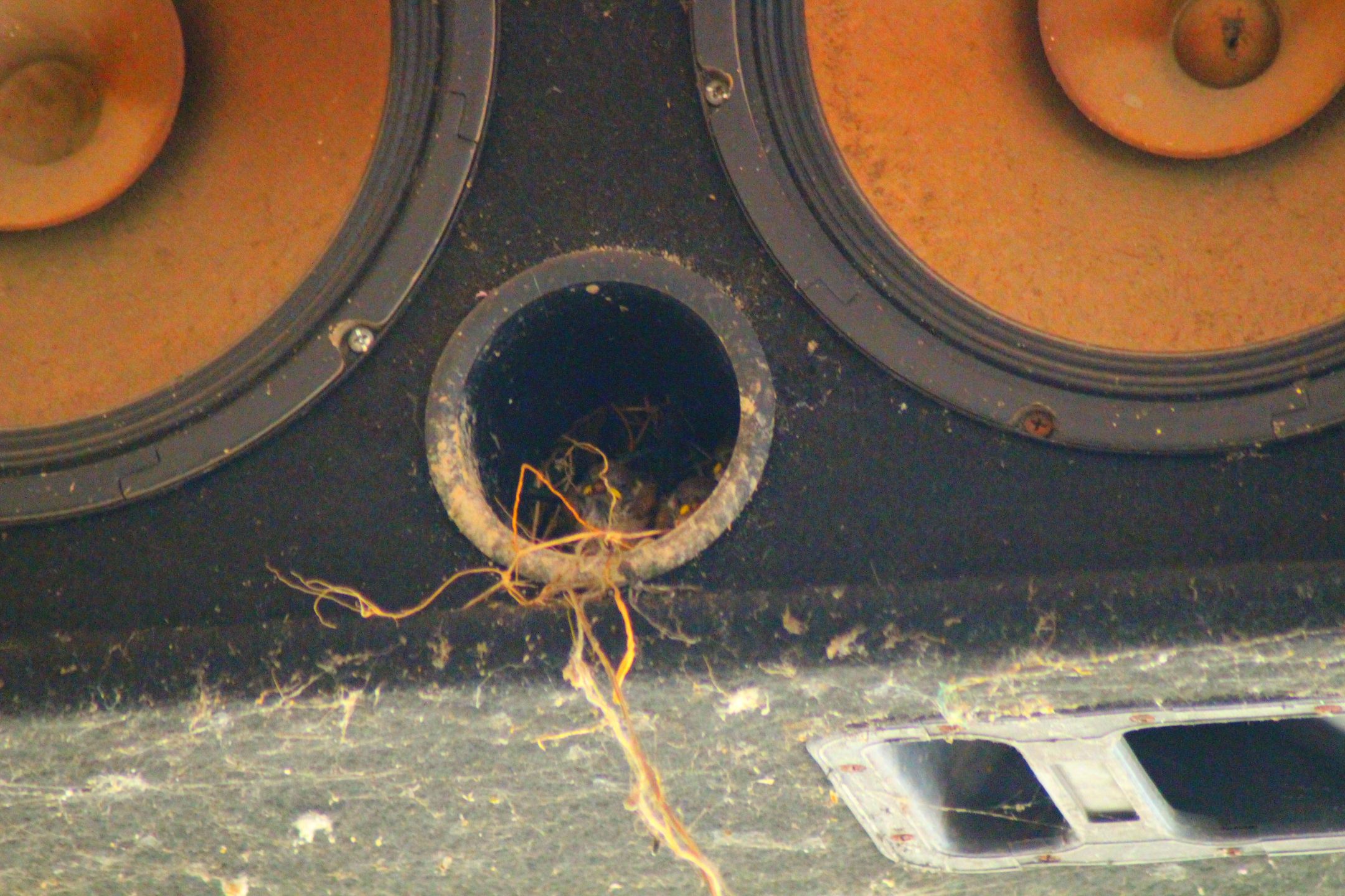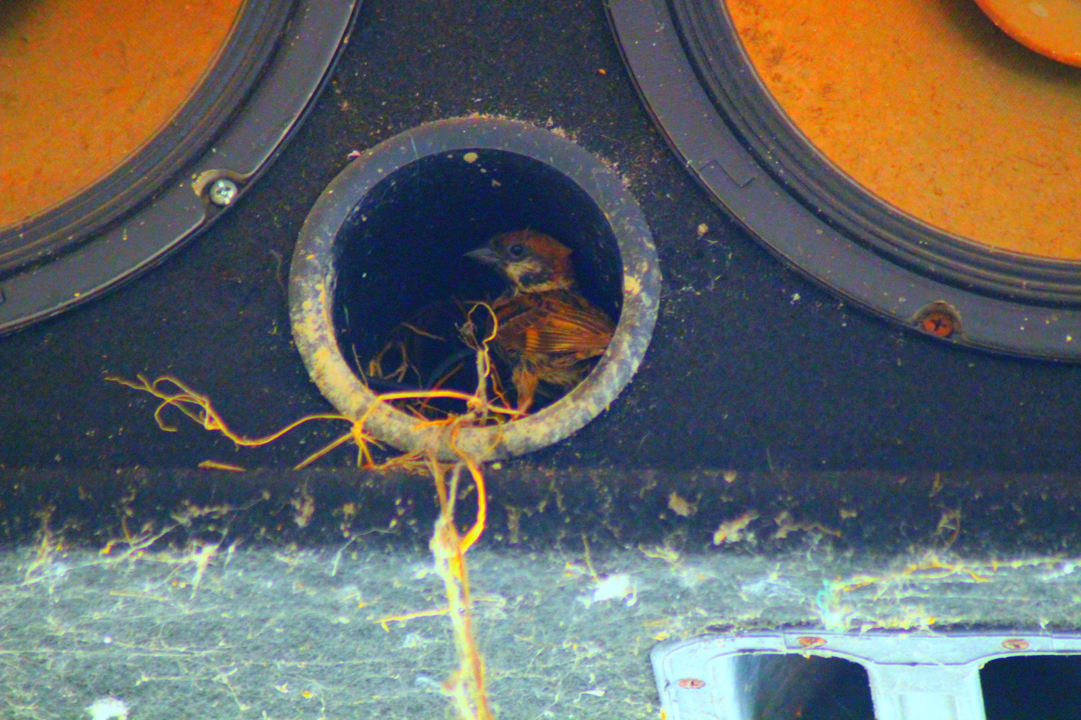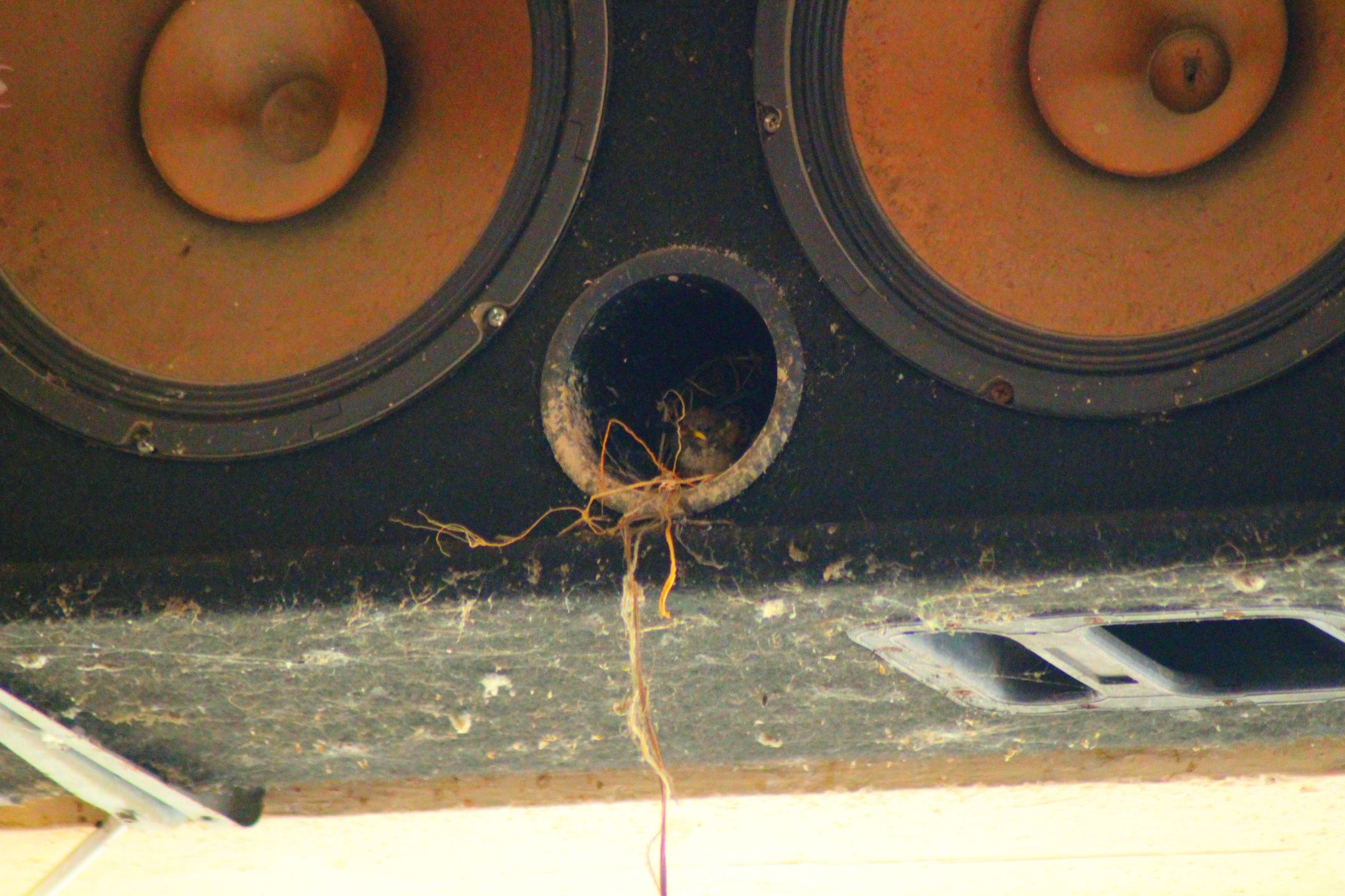 The loudspeaker hole has been a very convenient bird's nest for church baurngs since a few years ago because the loudspeaker is no longer working because it has been damaged.