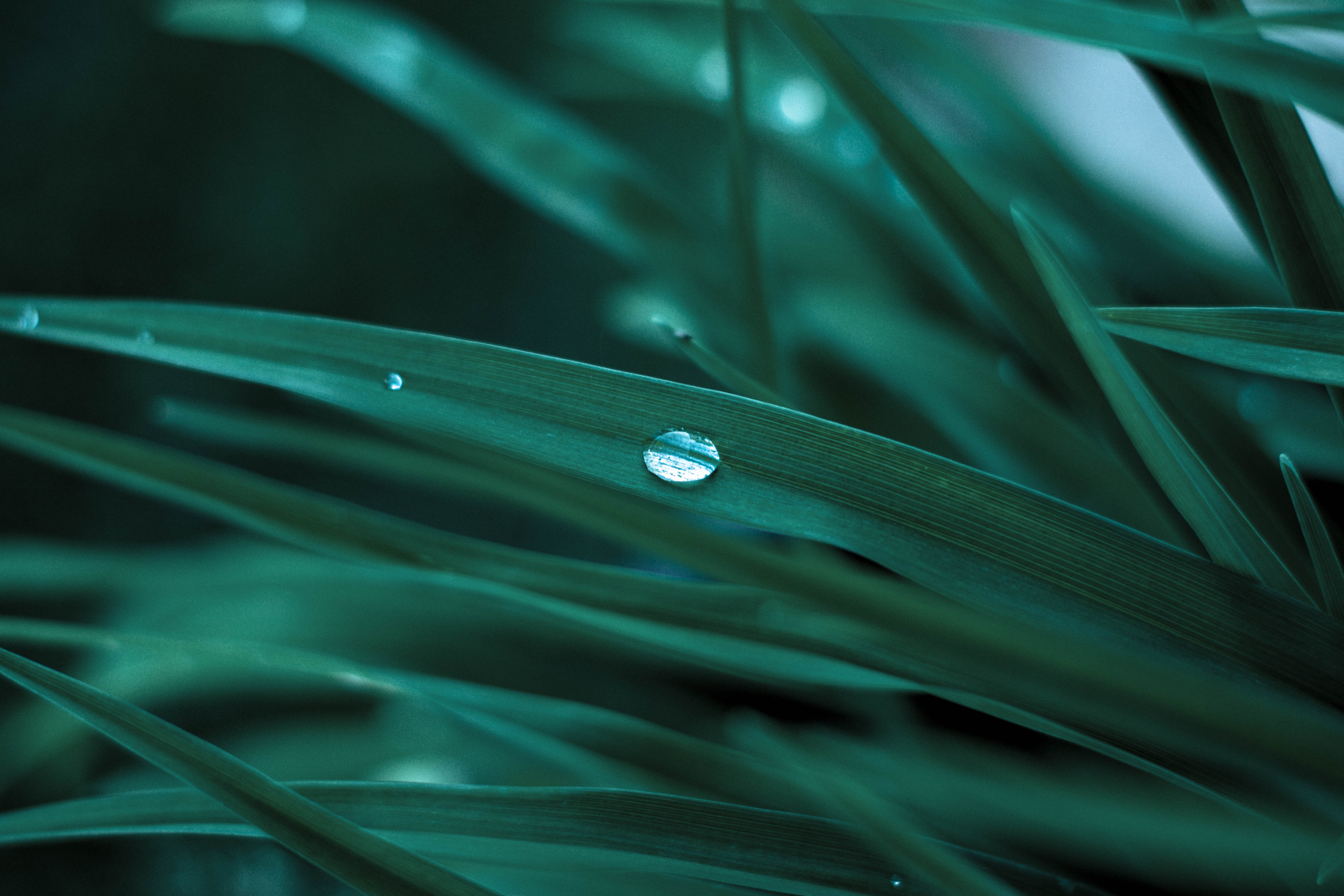 I like the composition in the first one, but the leaf texture in the second image is nice, and you get a little maginfication through the dropplet. Very cool.