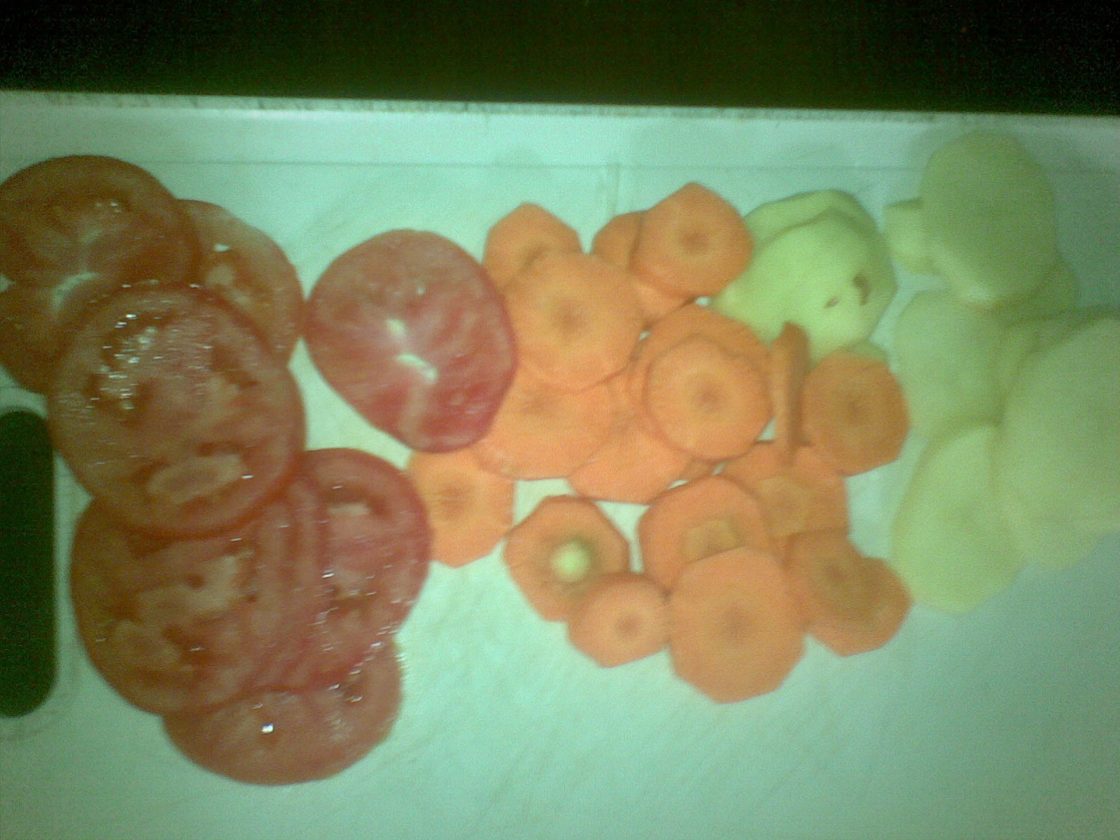 Luego ver cuales verduras añadir, y cortarlas en rodajas grandes como se muestra en la foto, yo escogí los que a mí más me gustan: