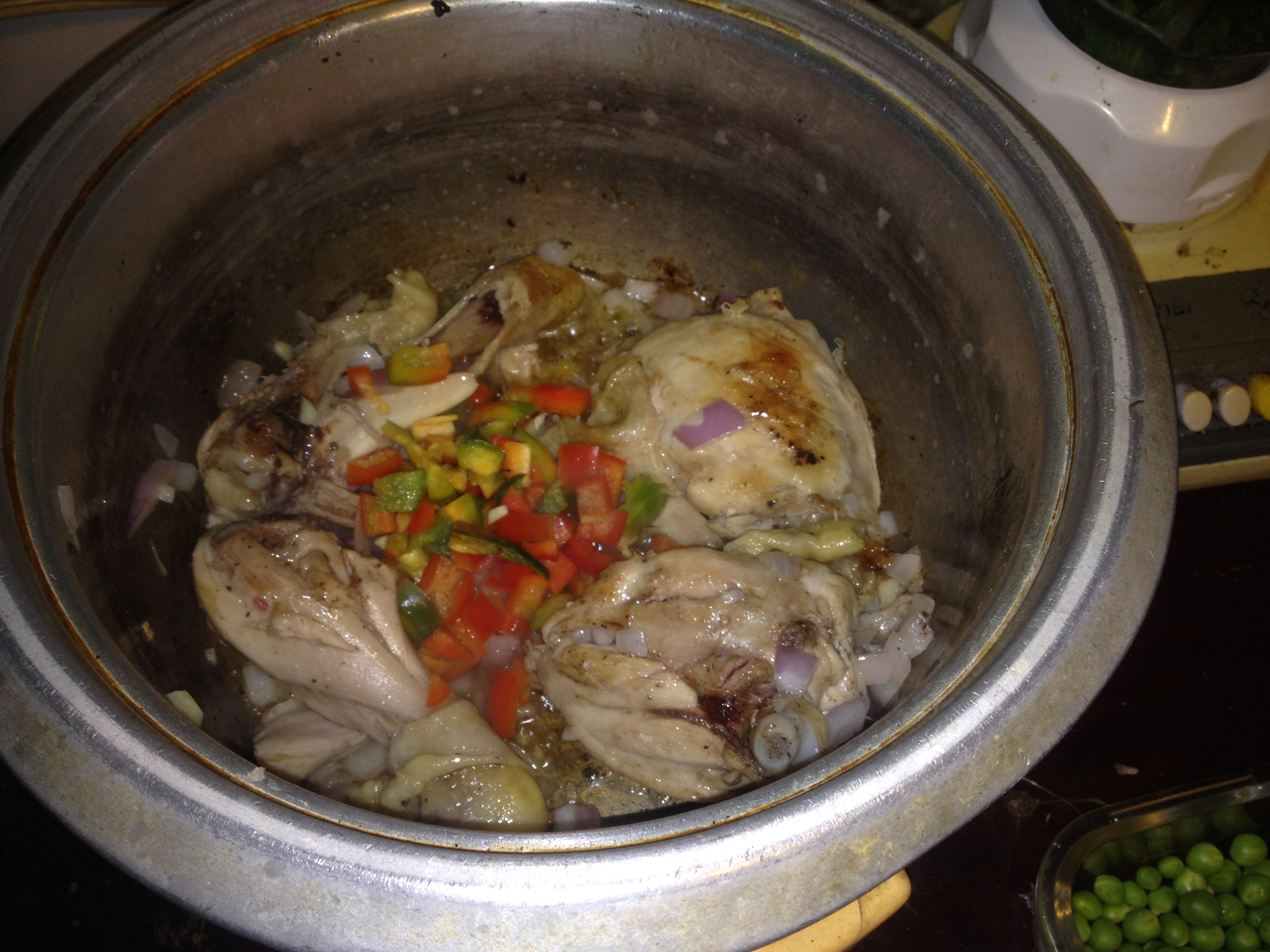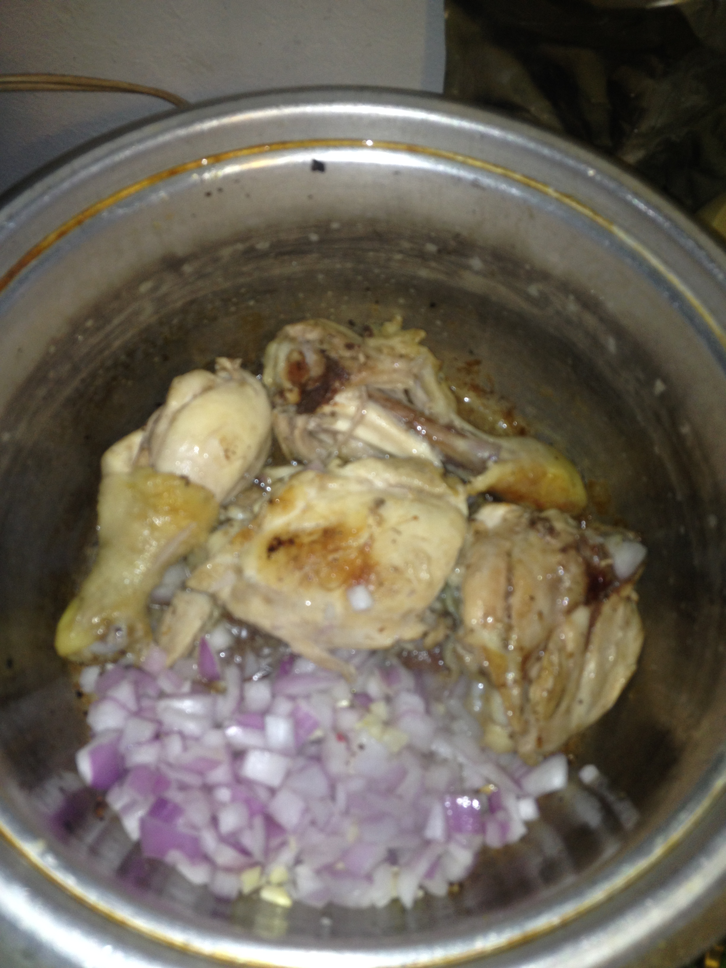 Después que estén selladas añadir la cebolla y el ajo así seguir sofriendo.