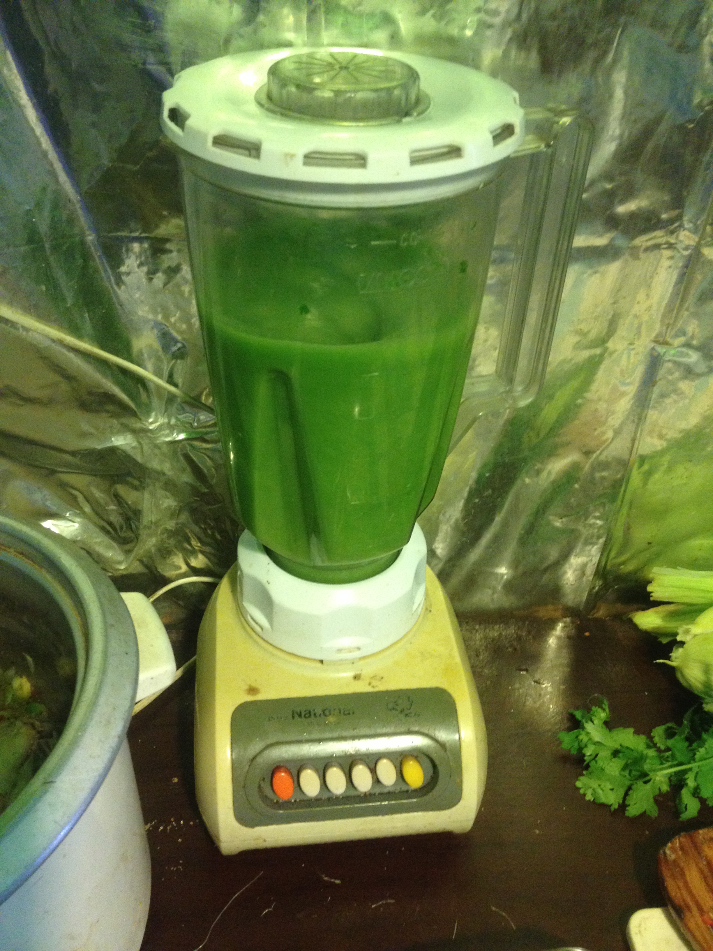 Licuar el cilantro en el agua y con la sal también con otra especie de su gusto, algunos añaden amarillin o palillo o carmensita.