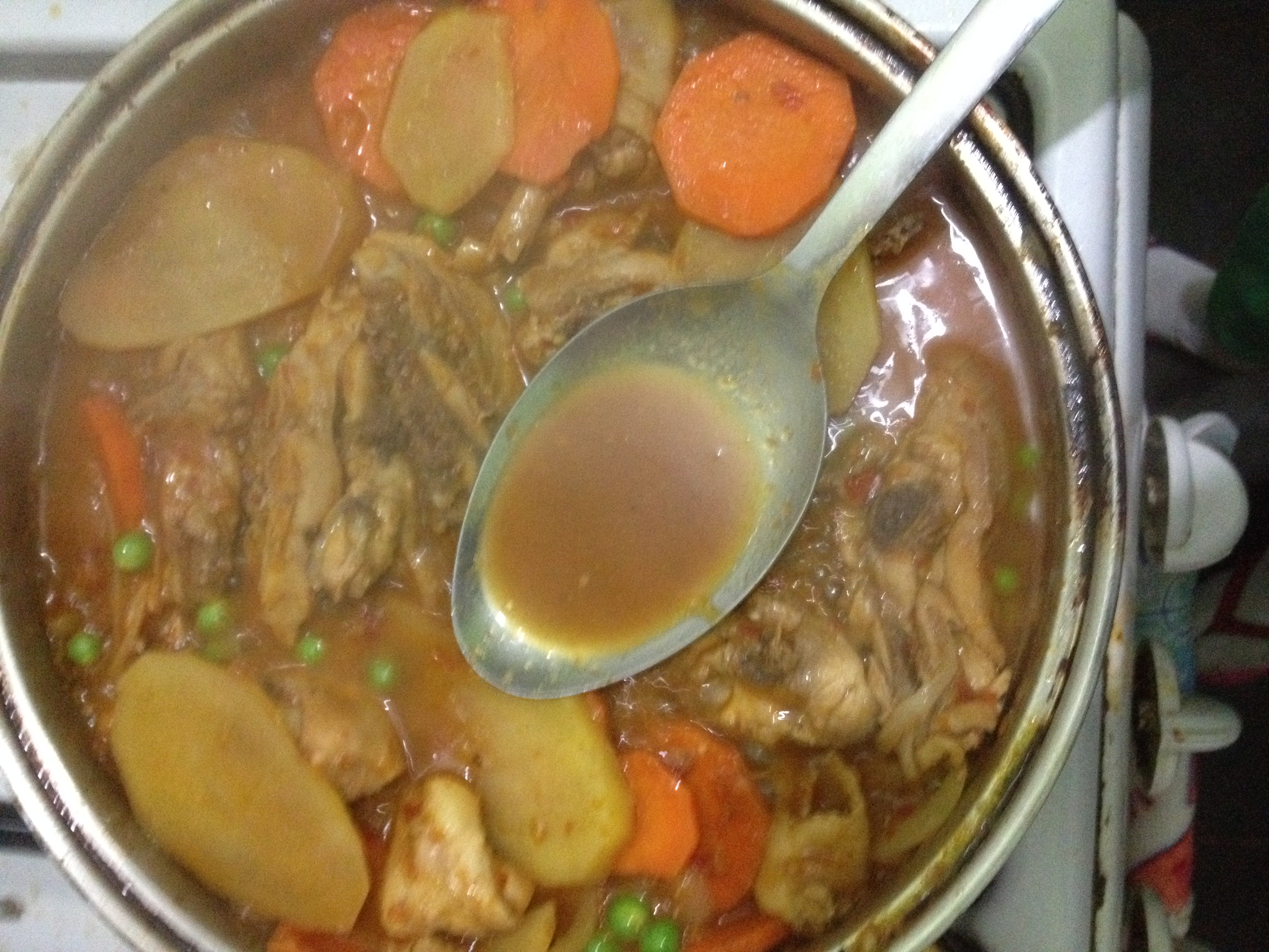 Licuamos el cuarto de tomate y el ají, lo añadimos en nuestra salten dejamos que hierva un tanto mas no mucho, sin dejar que el caldo espese. Luego añadimos el vino hasta que se mezcle con los sabores. Como se ve en la foto 8 y 9.