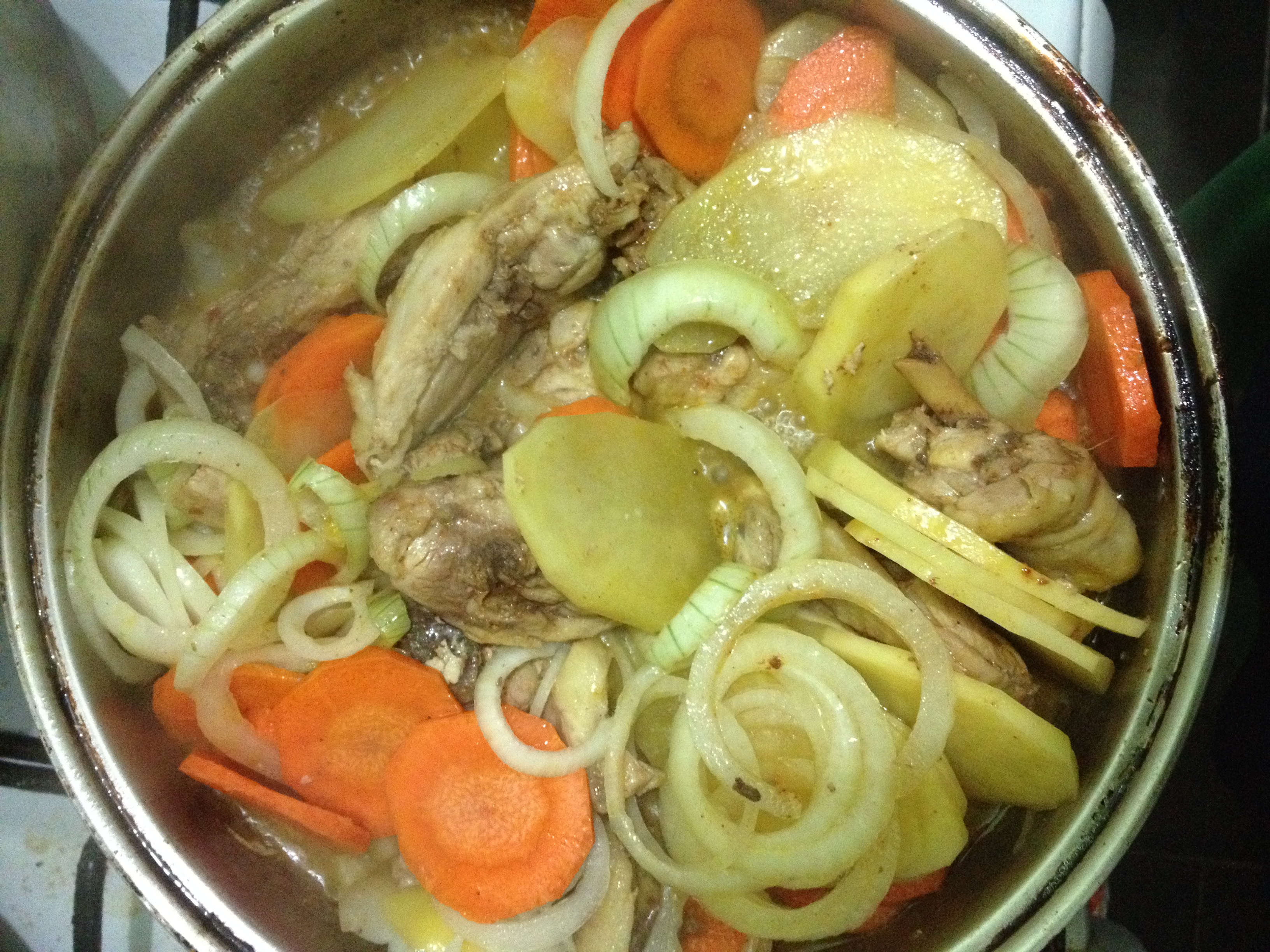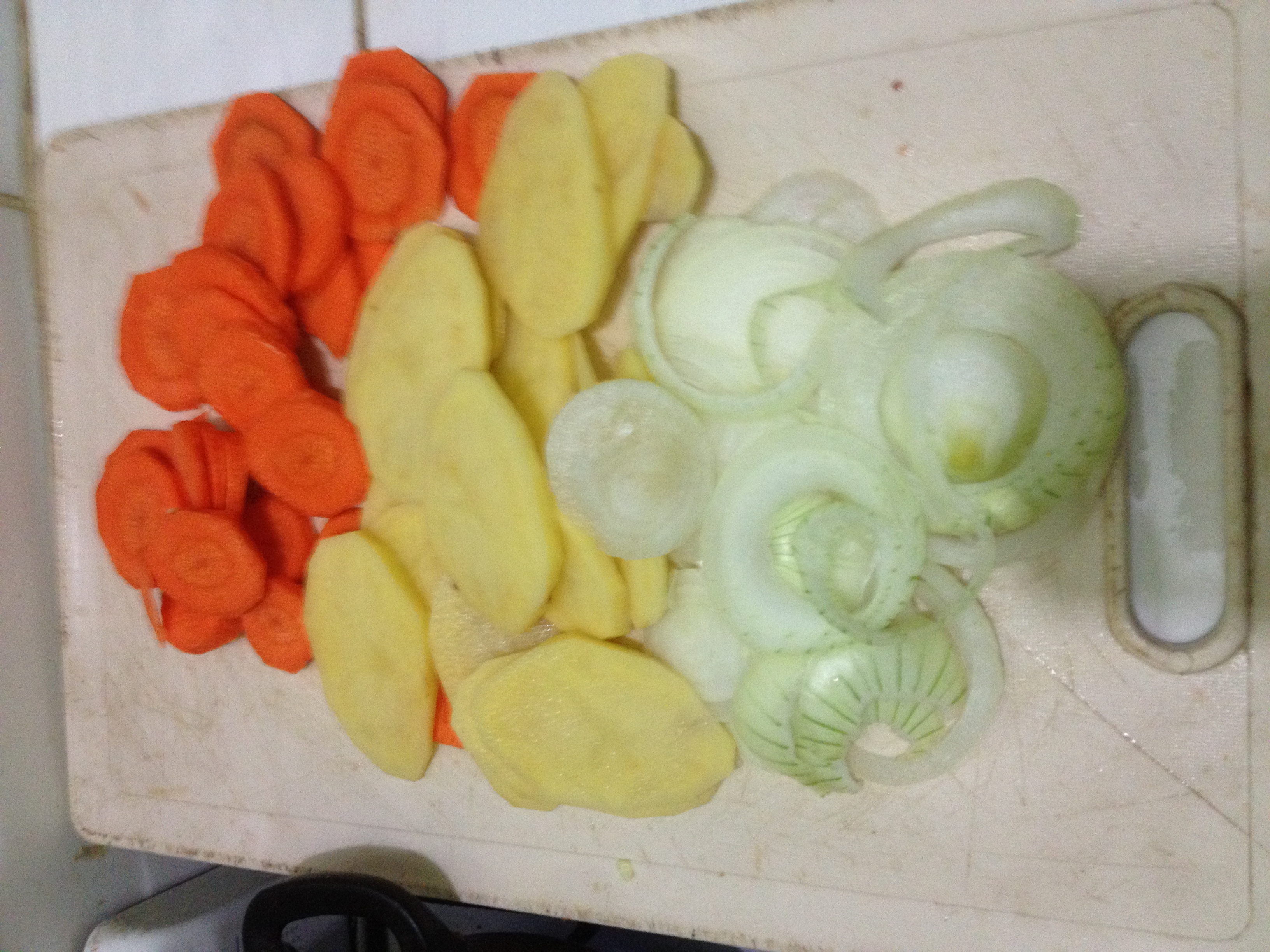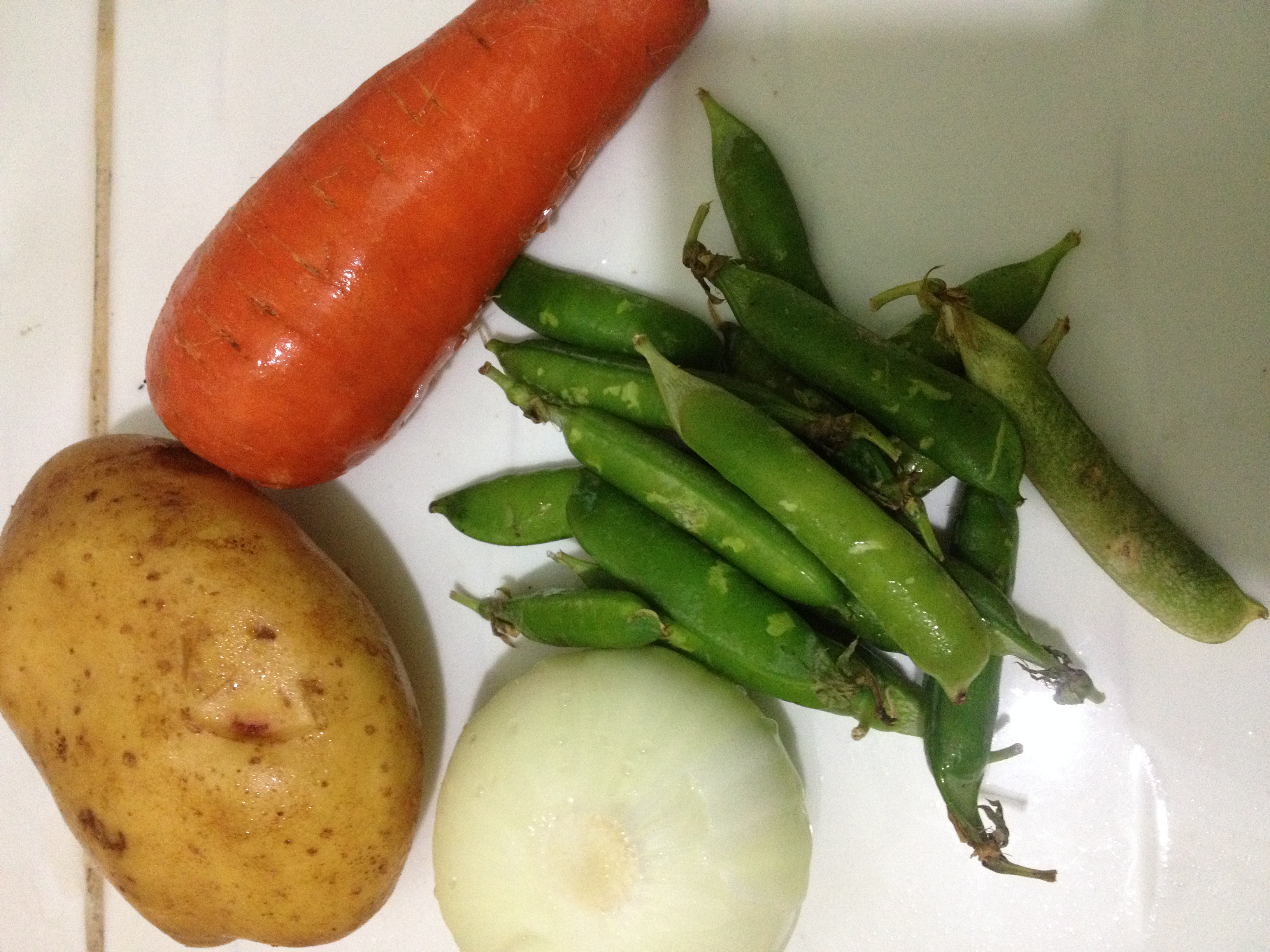 Seguidamente le colocamos las hortalizas y añadimos aproximadamente 1 taza y ½ de agua. Se espera que ablanden, cuando estén blandas añadimos las arvejas tiernas.
