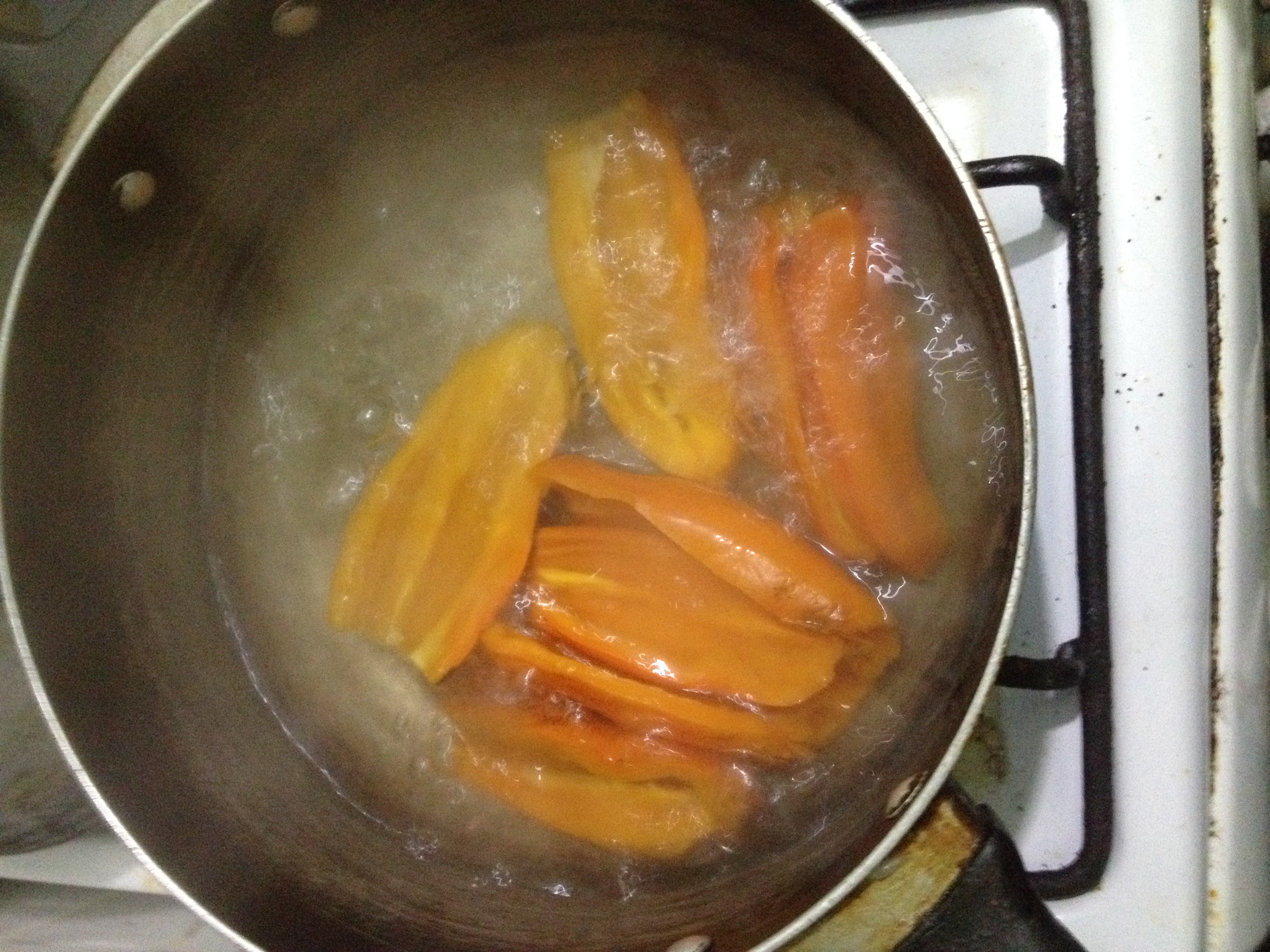 Hervimos el ají unos 5 minutos o más con el chorro de vinagre para que baje el picor del ají. (foto3)