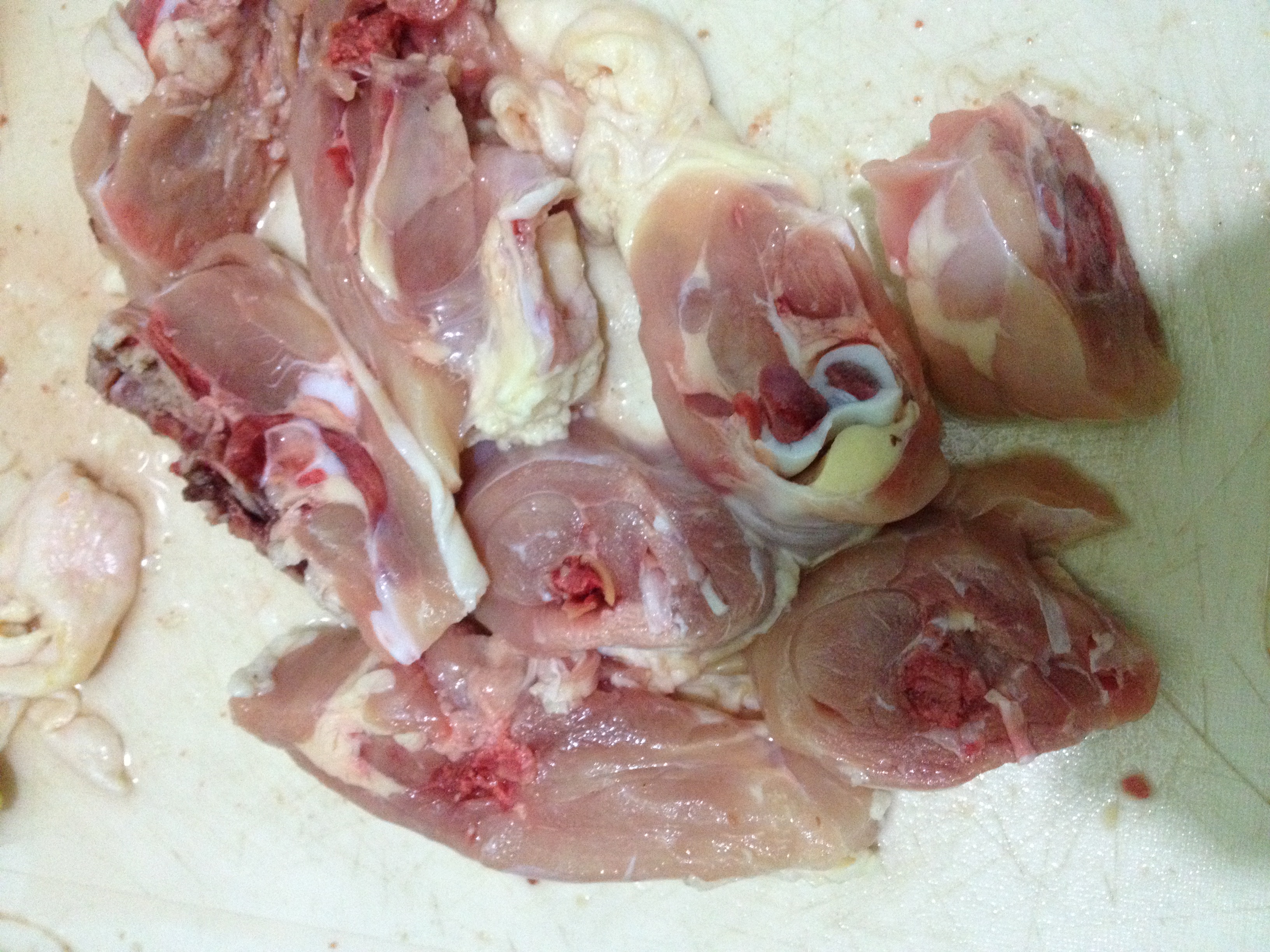Luego cortamos en pollo en medallones del grueso de nuestro agrado.