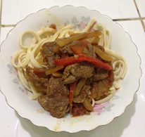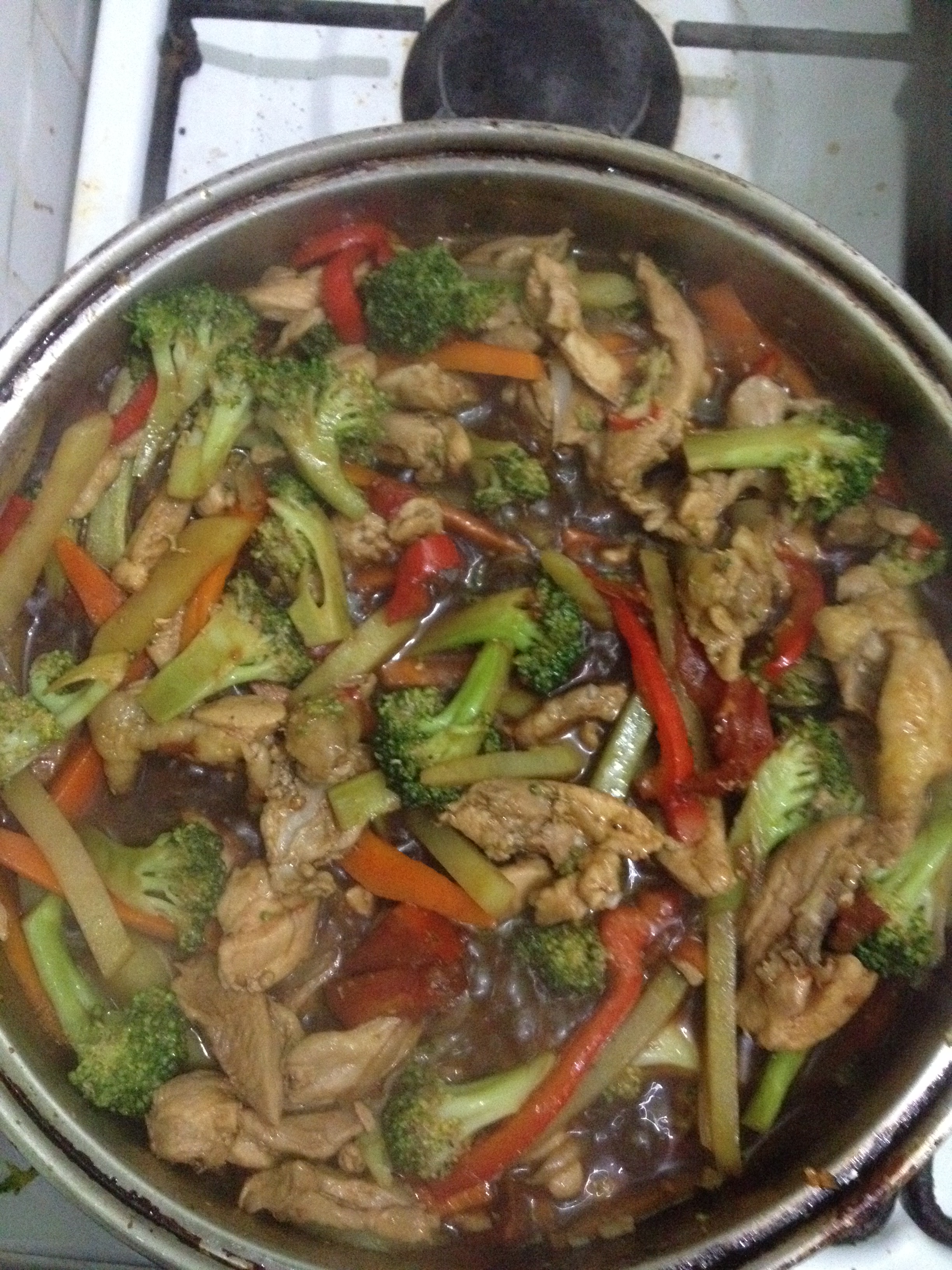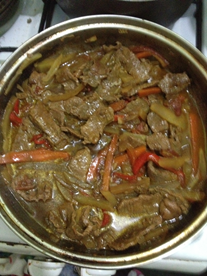 Con la carne salteada es el mismo principio pero se le añade un chorrito de vino de su agrado y no se le agrega coliflor.