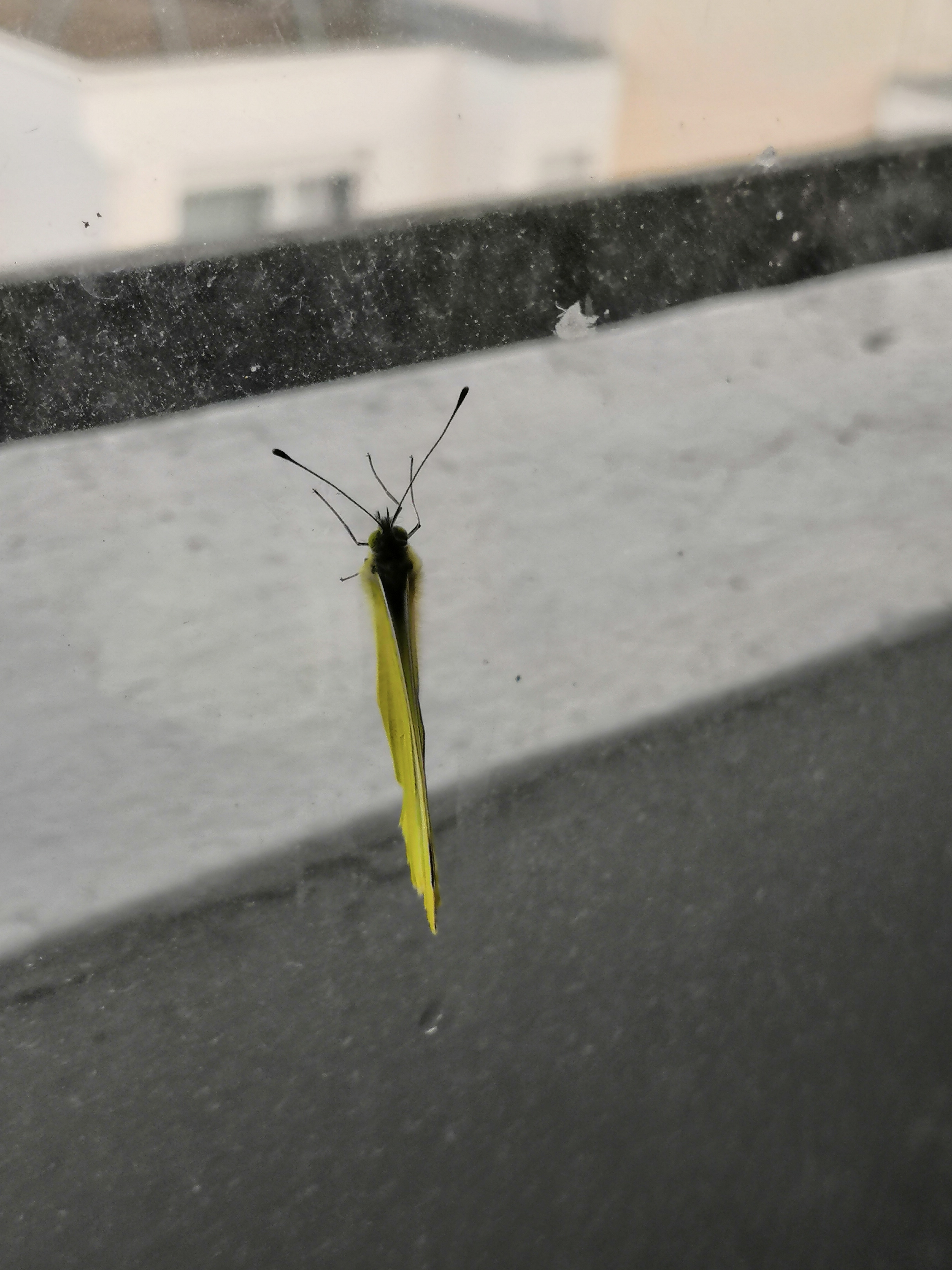 This little fella was waiting for us on the window, probably a little tired from trying to escape, and that's where I found him (luckily the cats didn't catch it before we got there).