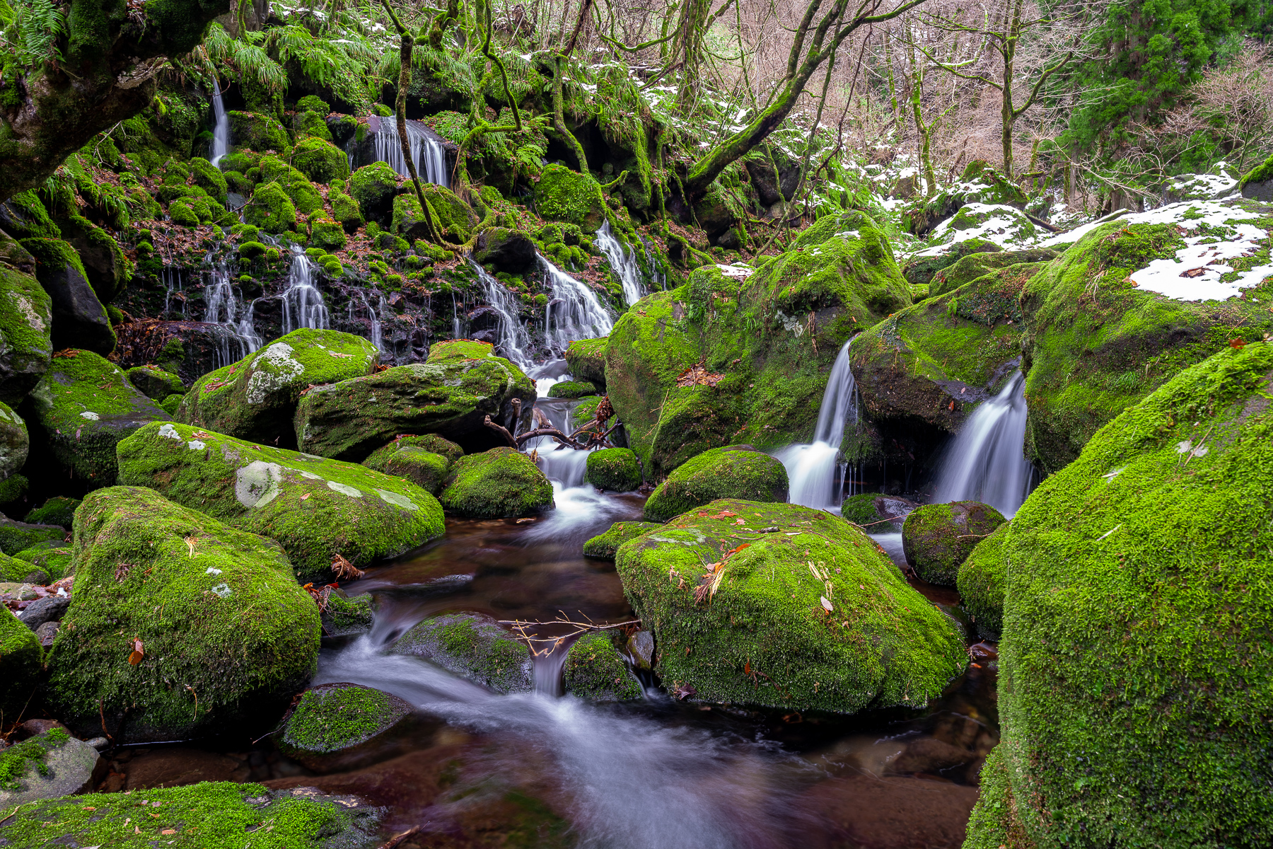 I used this time to visit a few waterfalls I'd found in my research. One of my favourites from the region was the Mototaki Waterfall, it seemingly comes out of nowhere in the hillside! I have a bit of a "soft spot" for green mossy boulders and creeks and I absolutely love snow, so this was everything I love in nature all in the one spot!