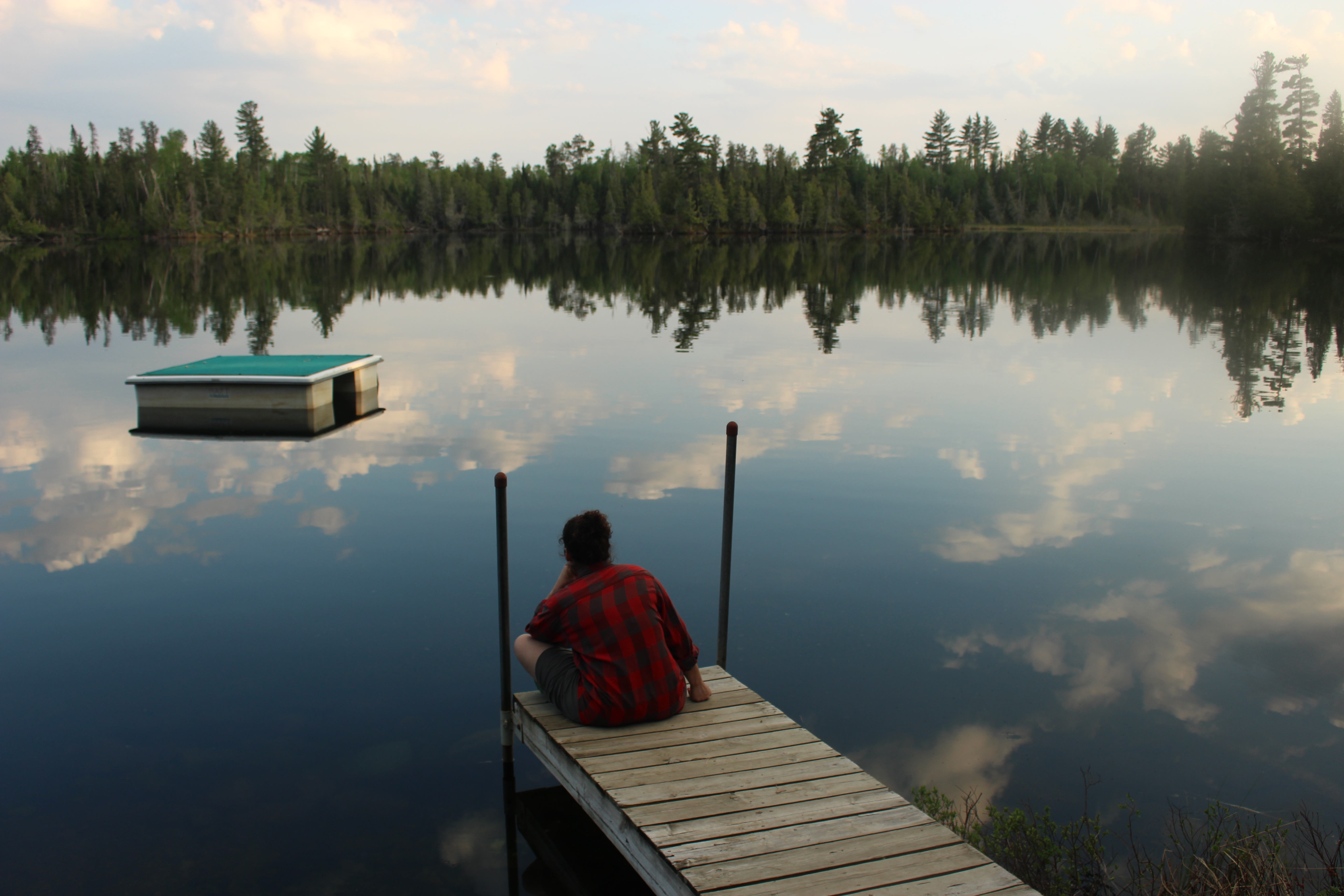 Wife enjoying a peaceful moment of reflection on our little lake.
