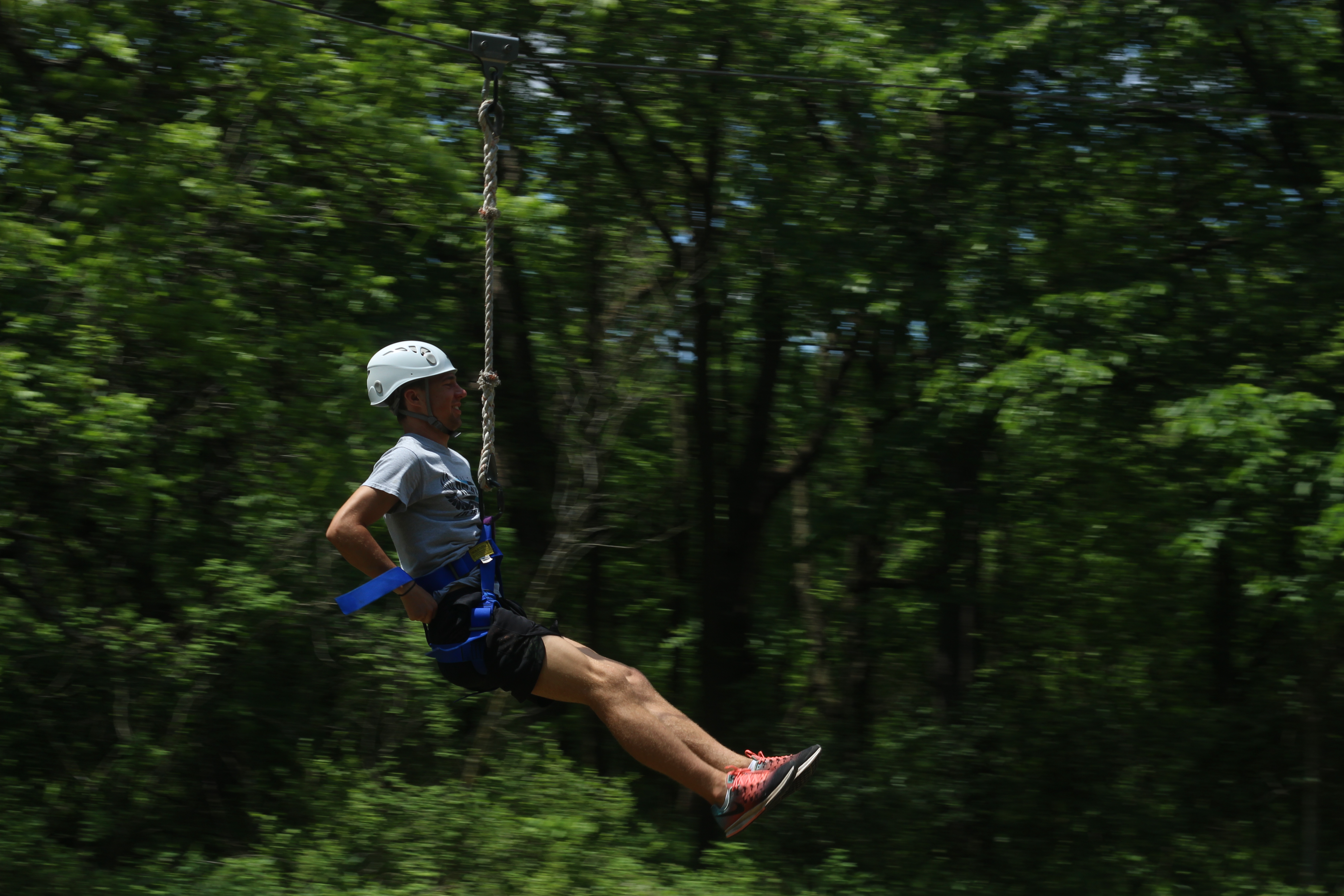 Practicing my action shots during a recent week of Challenge Course and High Ropes Certification.