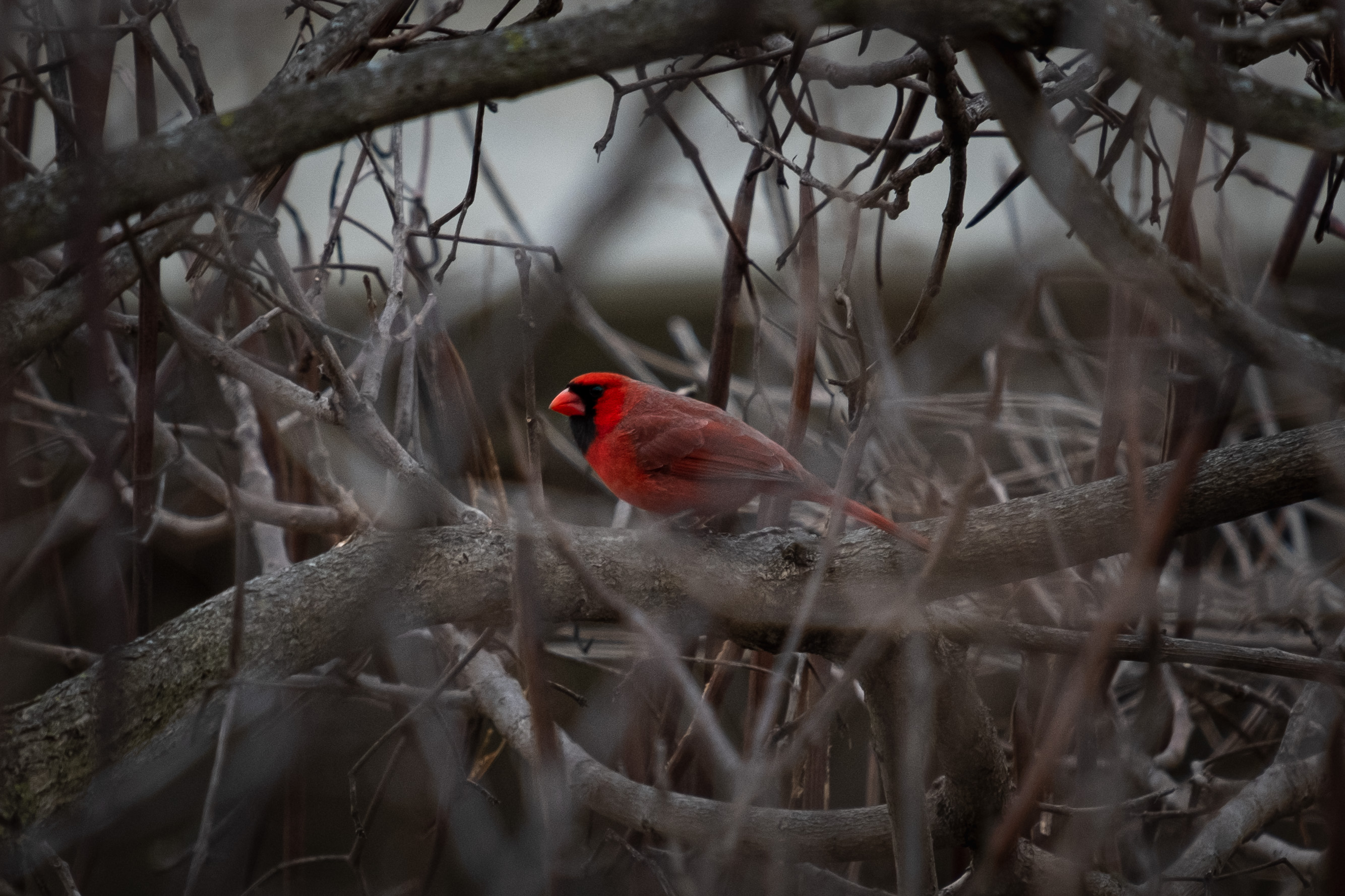 I went for a walk yesterday since it was an unseasonably warm day and came across this bright little Cardinal! I always love the pop of color they can give an otherwise dull patch of bushes.