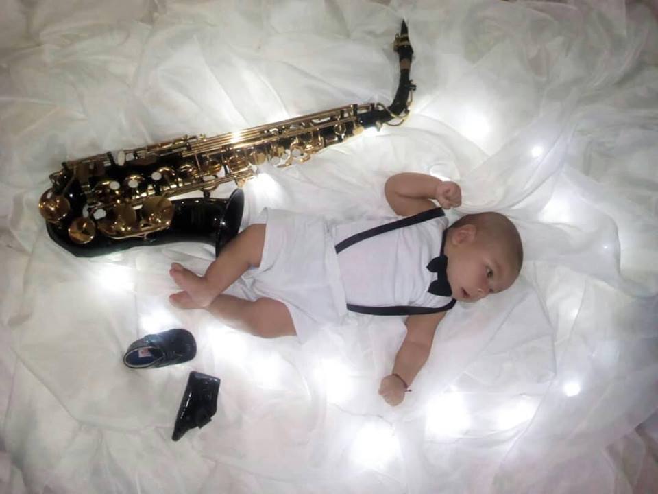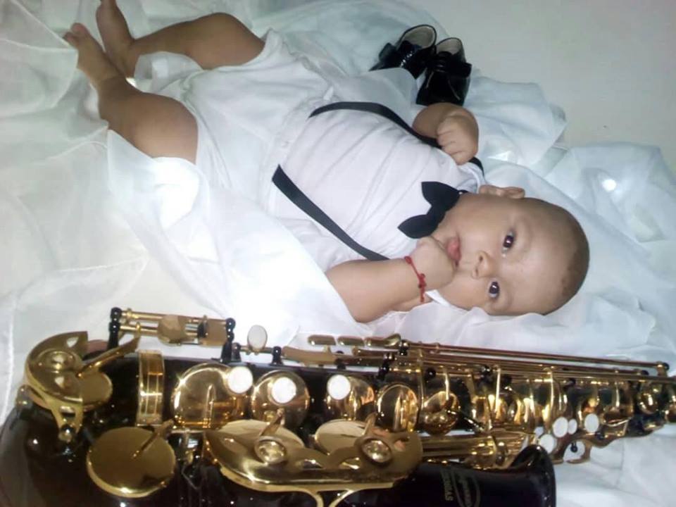Her mother is a great friend and more than that, she is like my sister, we formed together as musicians since we were little girls and this beautiful little man is next to his saxophone and maybe he wants to be a musician like his mother and his aunt godmother.