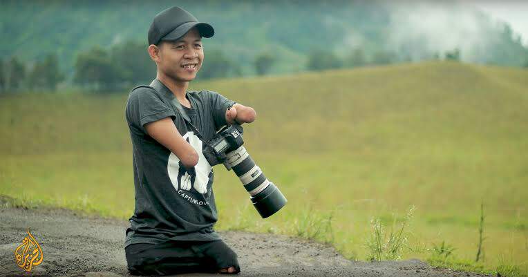 Achmad Zulkarnain Might have been born without hands and legs, but that did not get in the way of his success. The Indonesian man is a professional photographer who refuses to be defined by his physical disability.