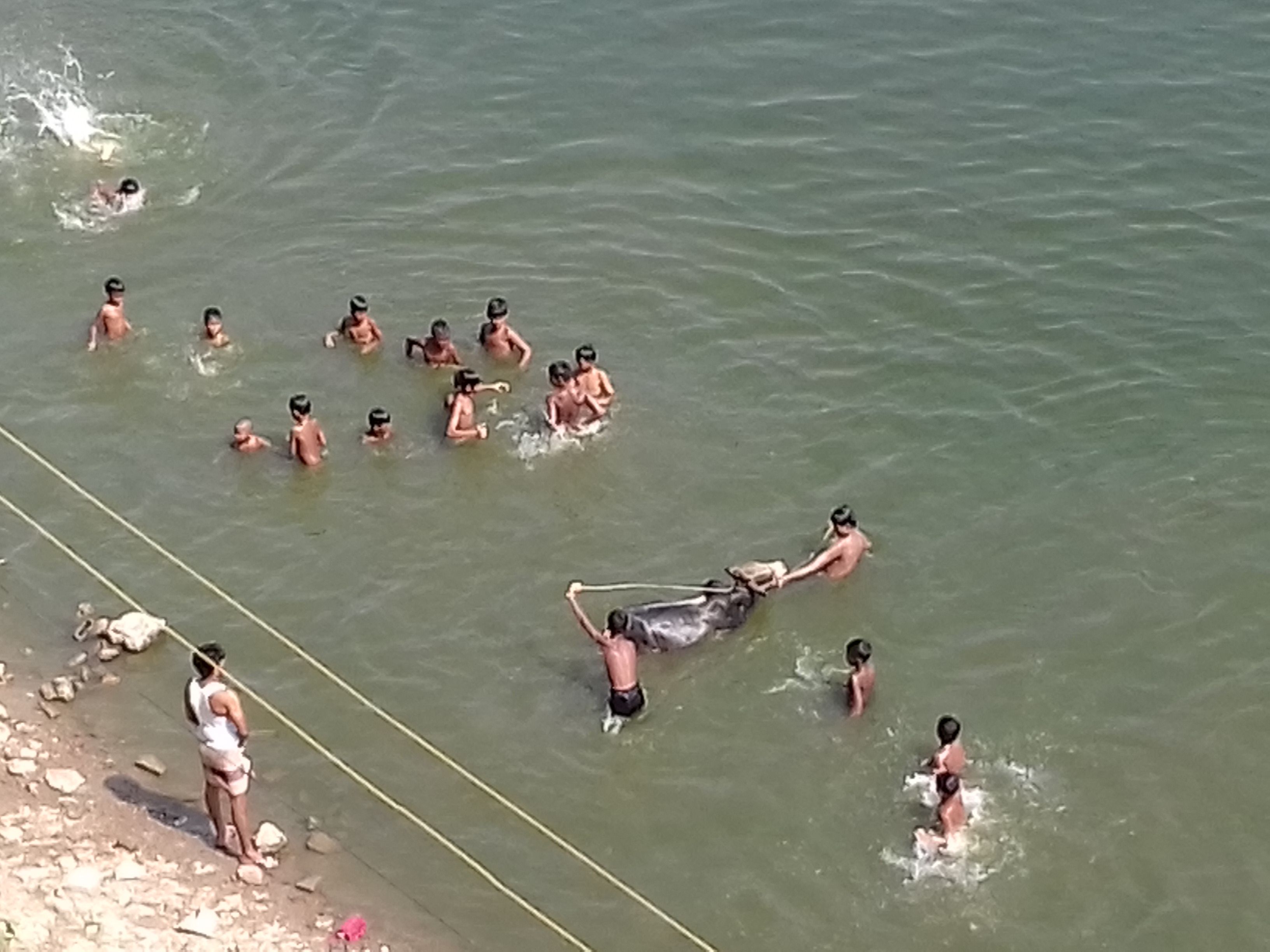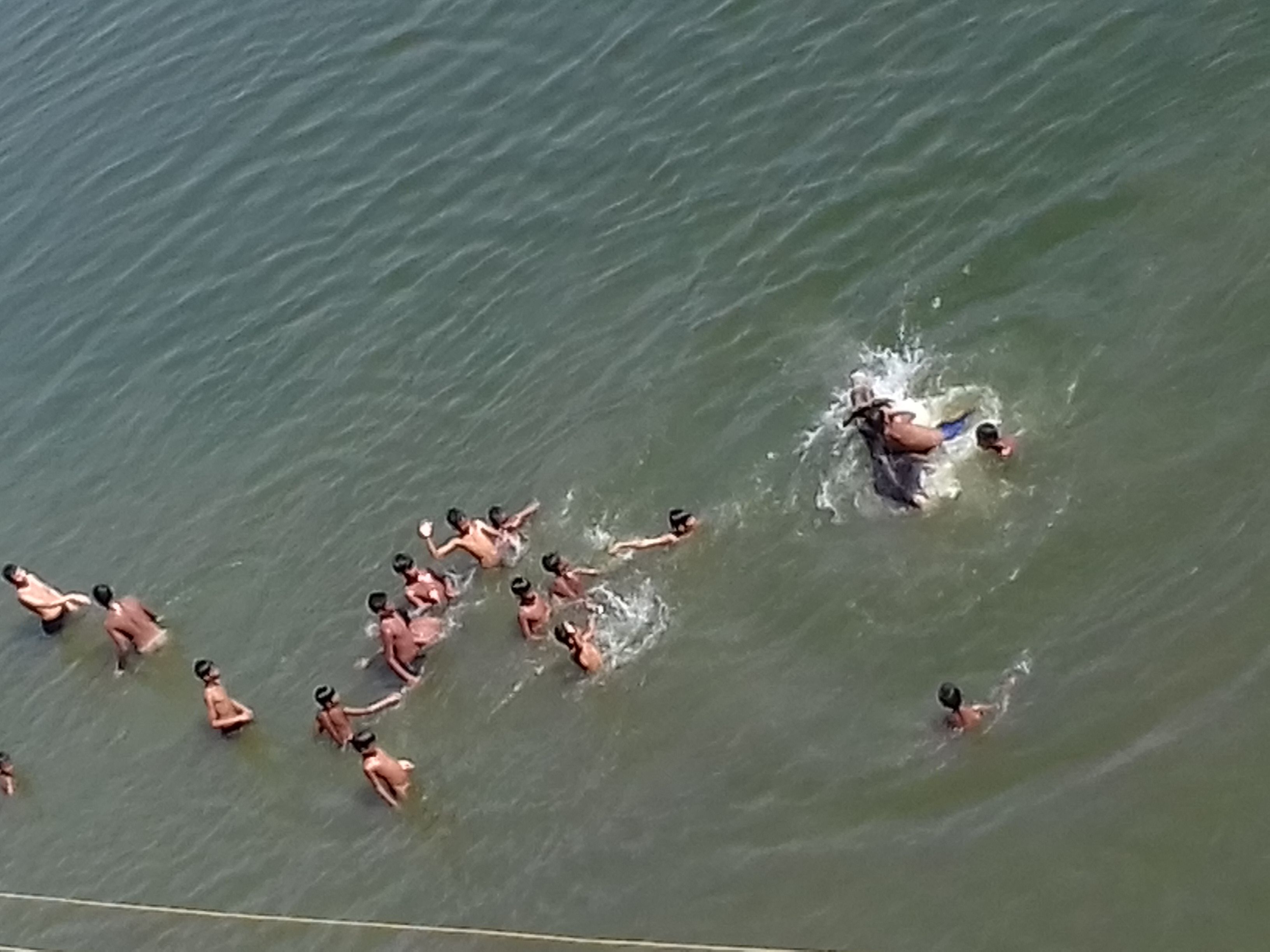 Hi friends good noon. Boys are happenstance / bath in the pond. Now outside temperature is 35 degree centigrade. It is too high. So boys are enjoying bath in the pond. I captured this photo from world trade centre Agrabad Chittagong Bangladesh. This pond name is dabar par.