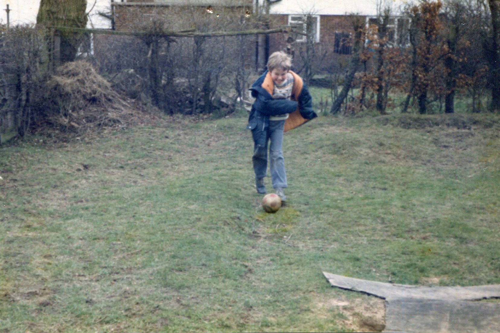 Flaired jeans and a parker coat, this must be circa 1985 and our old back garden. Home of many dribble along that ridge that kept the ball in line.